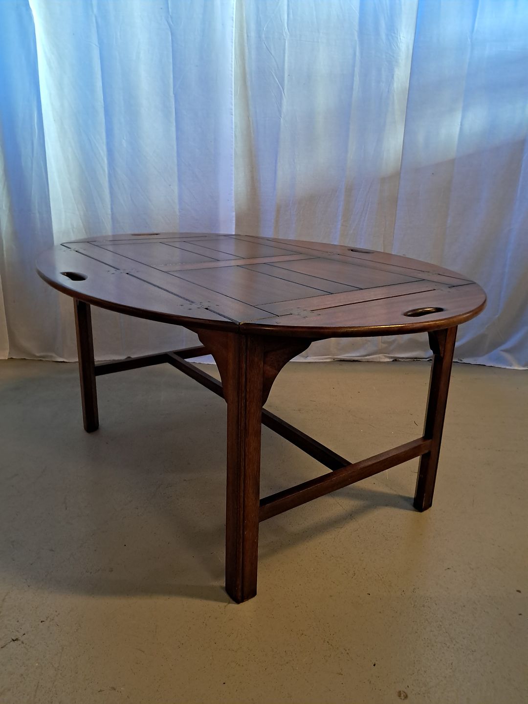 Sofabord i massivt og fineret mahogni, fra 1980erne.