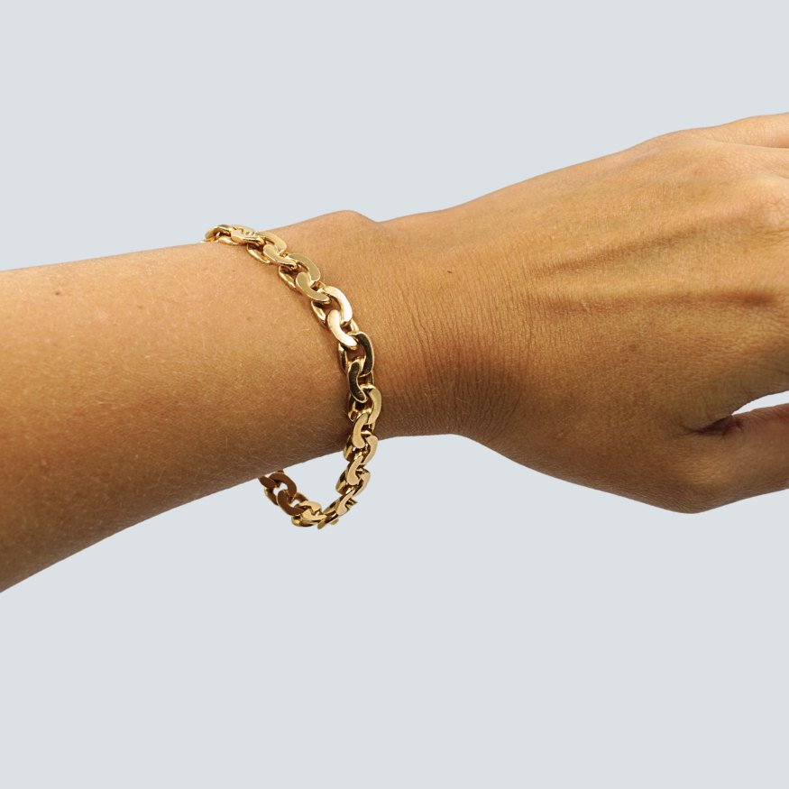 Armbånd i 18 kt. guld. Sammensat af facetslebne led i kraftig kvalitet.