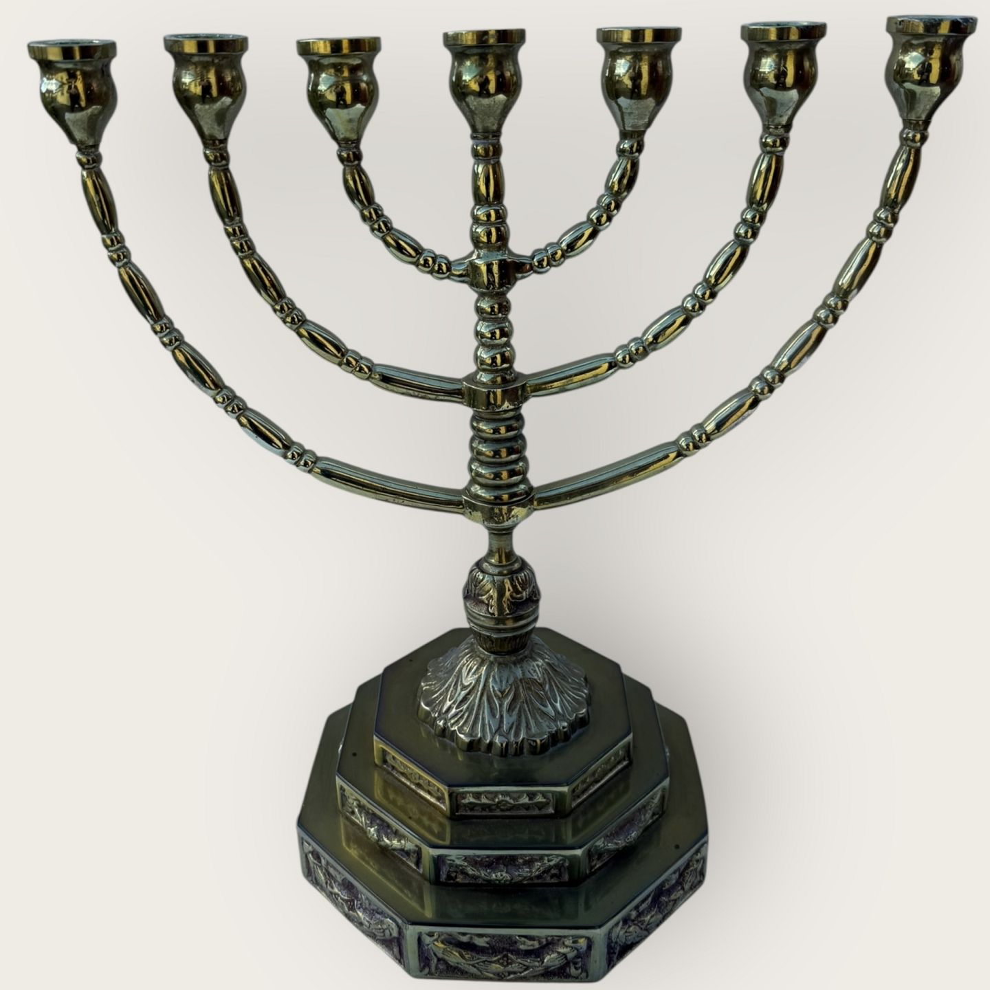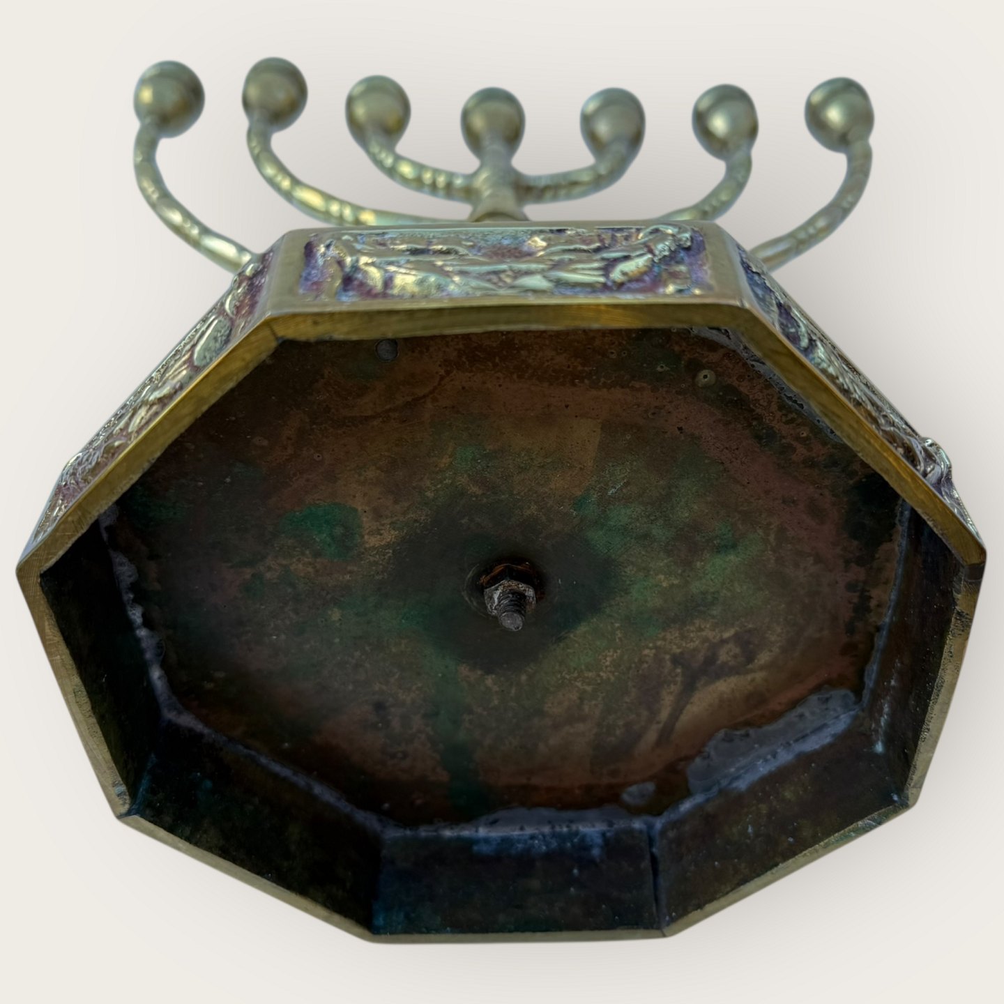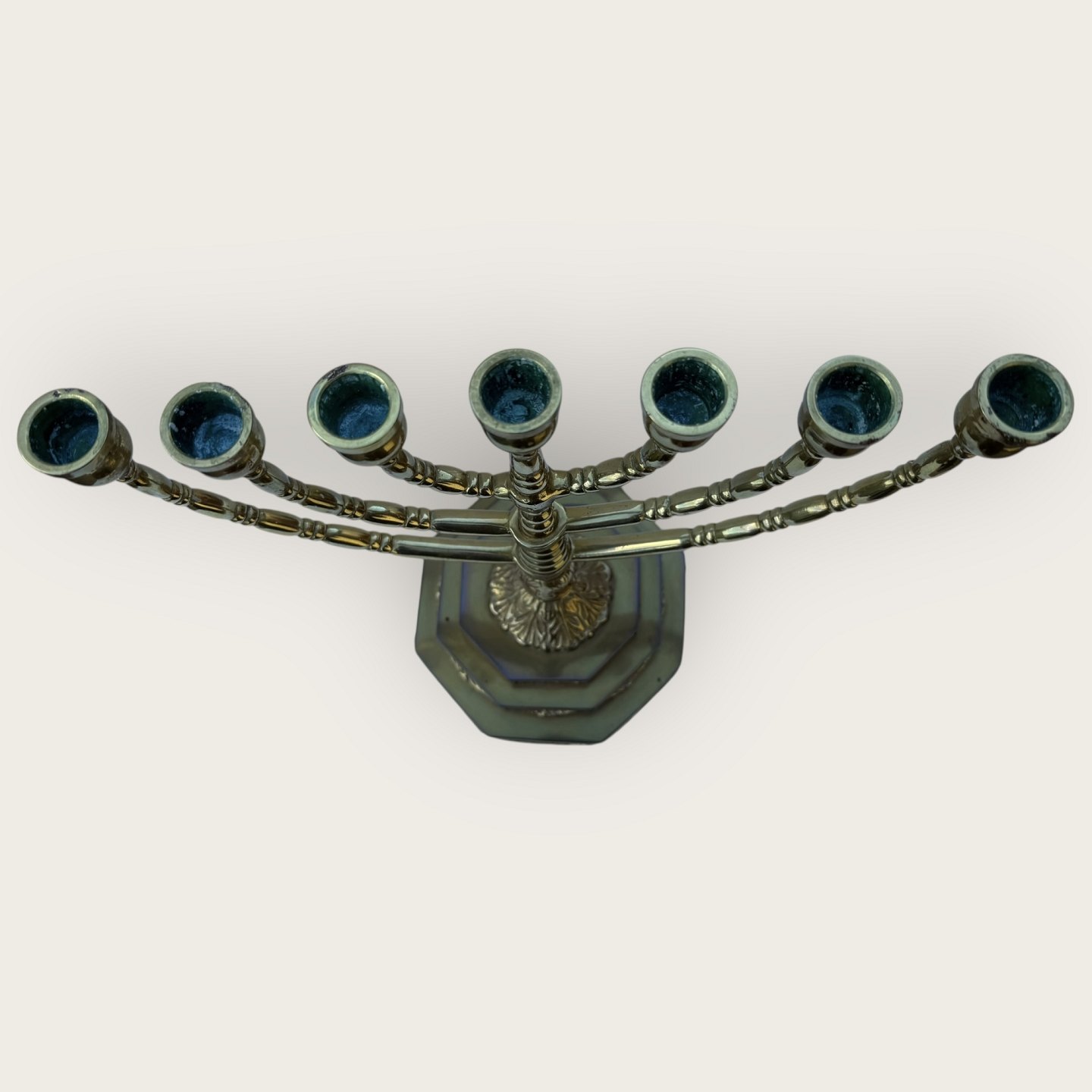 7-armiger Kerzenständer aus Messing, 33,5 cm hoch, 30,5 cm breit *Schöner patinierter Zustand*