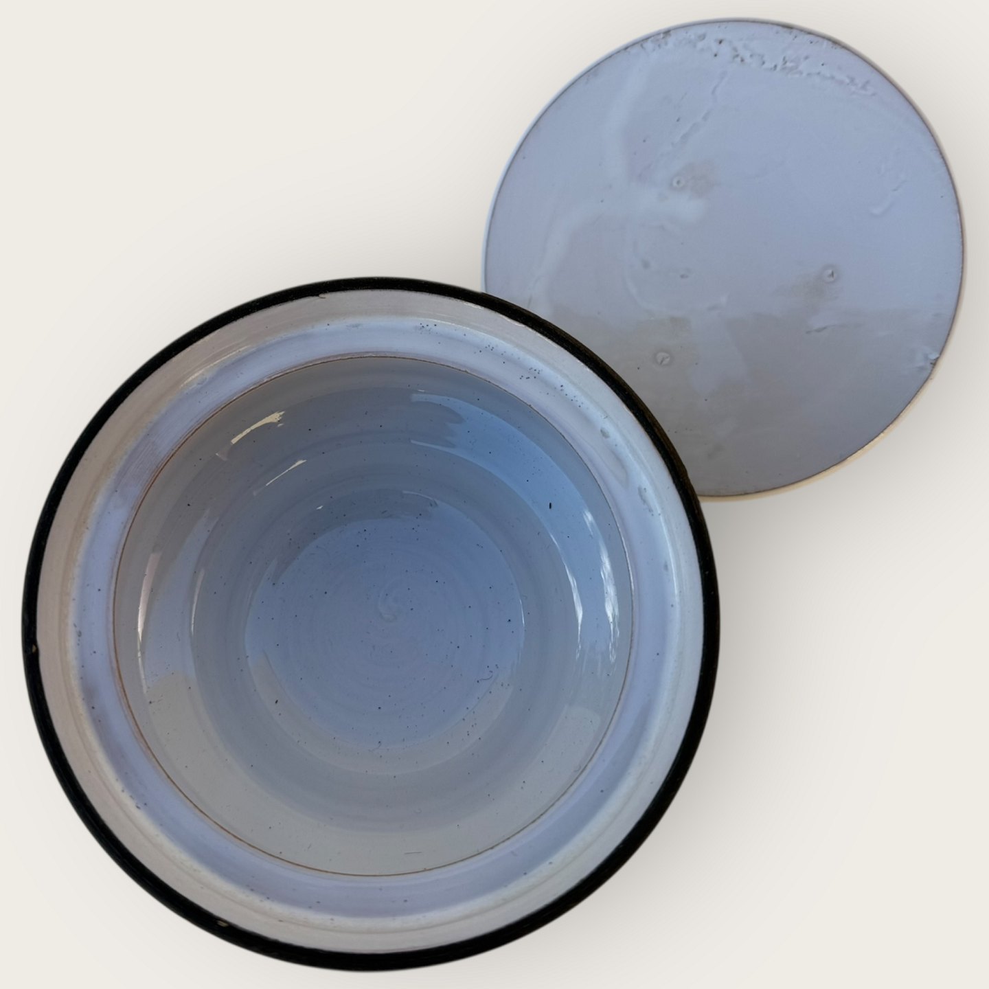 Grethe and Jørgen ceramics, Striped bowl with lid, Diameter 13.5cm, height 7.5cm, fine condition