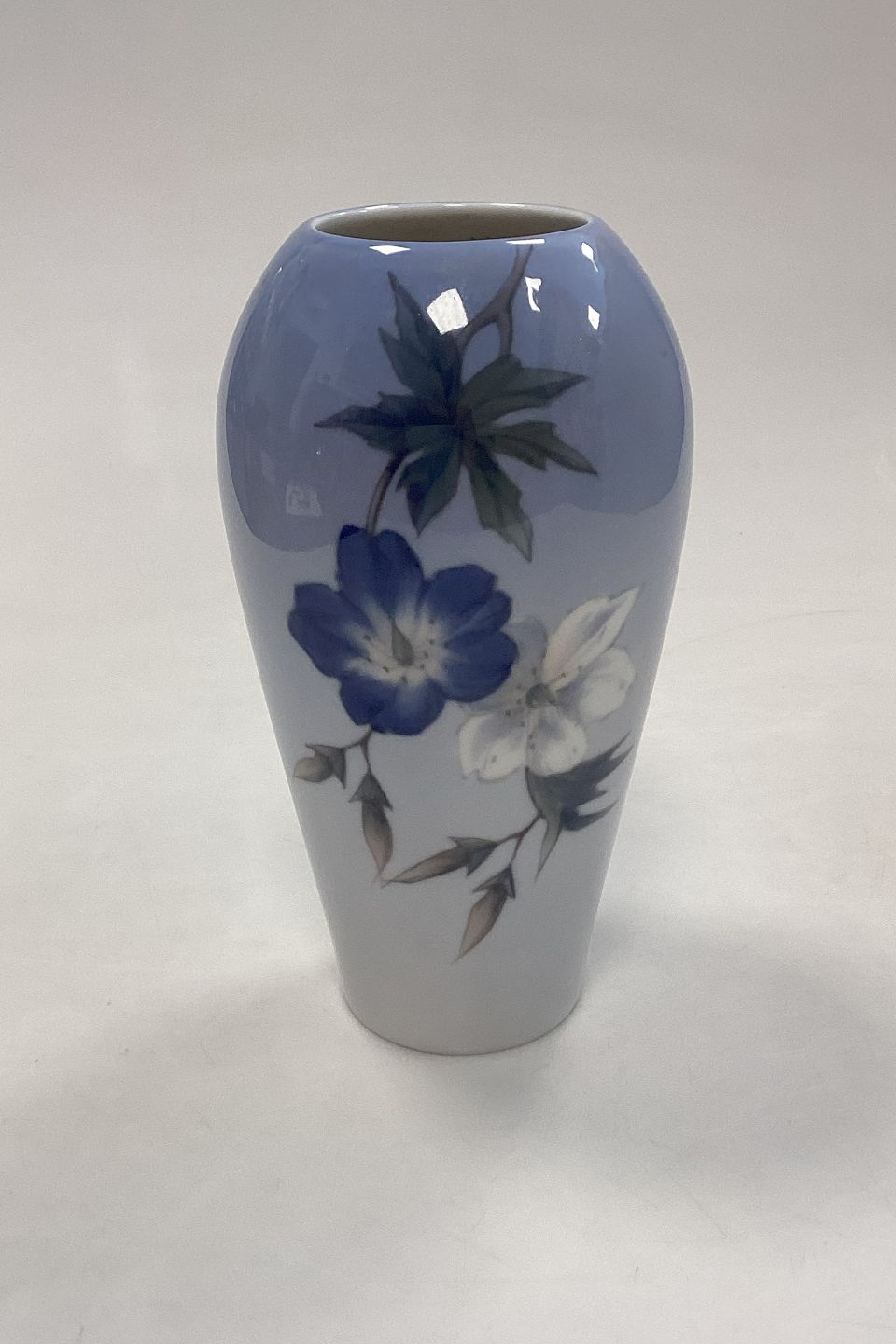 Royal Copenhagen Art Nouveau Vase med Blå og Hvid Blomster motiv No. 2679/295, 1. Sortering