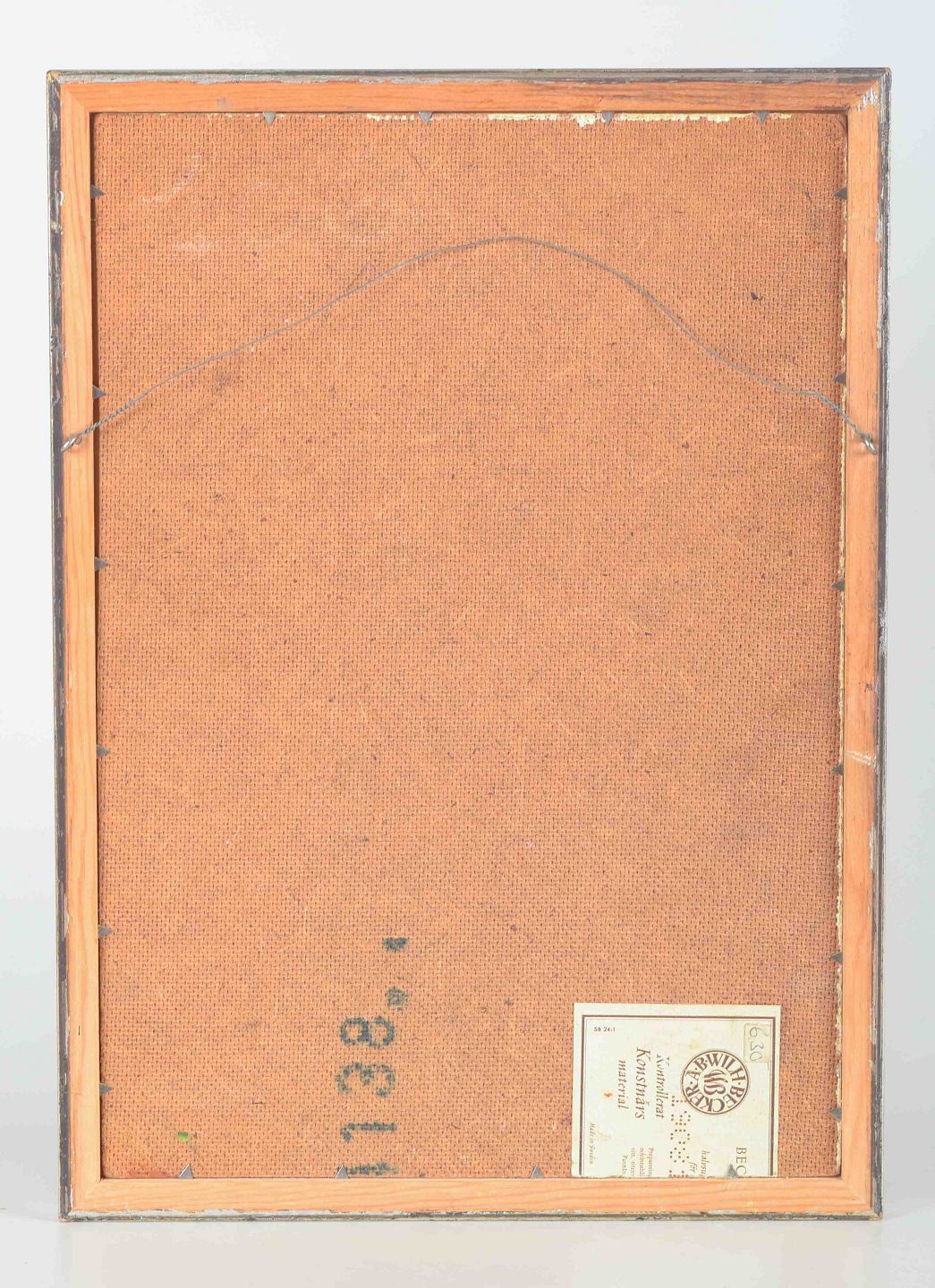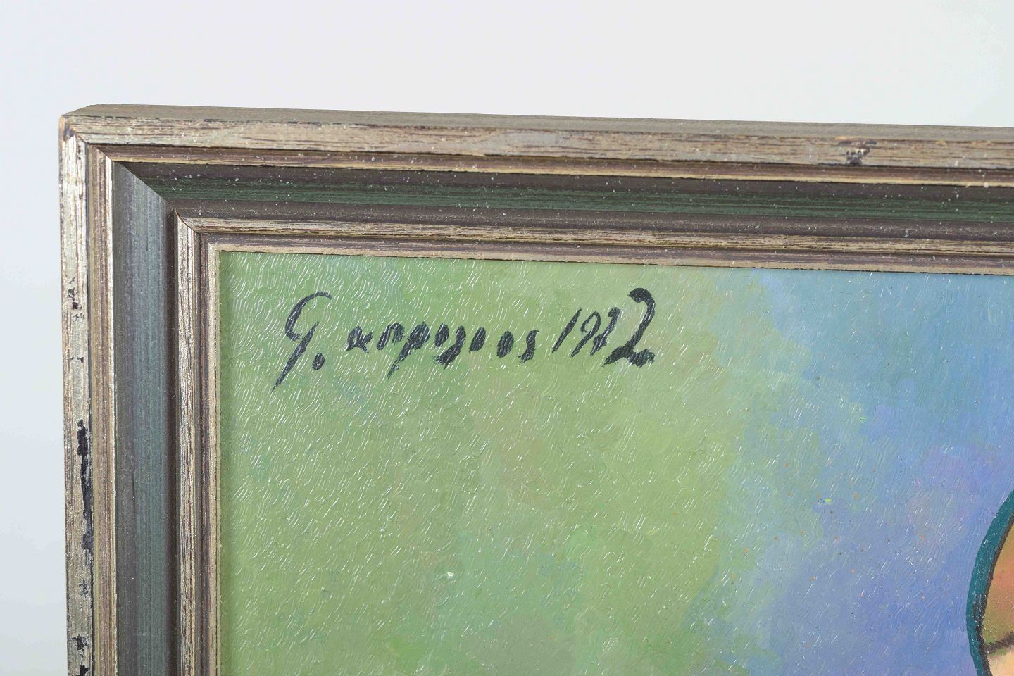 A contemplative figurative painting depicting a child holding a dove, with a colorful ball in the foreground. The composition is simple and characterized by clear contours, calm color fields, and a delicate atmosphere that emphasizes the quiet gravity of the motif.