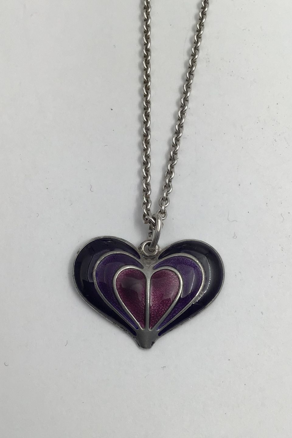 David Andersen Sterling Sølv / Emalje Hjerte Vedhæng + Kæde