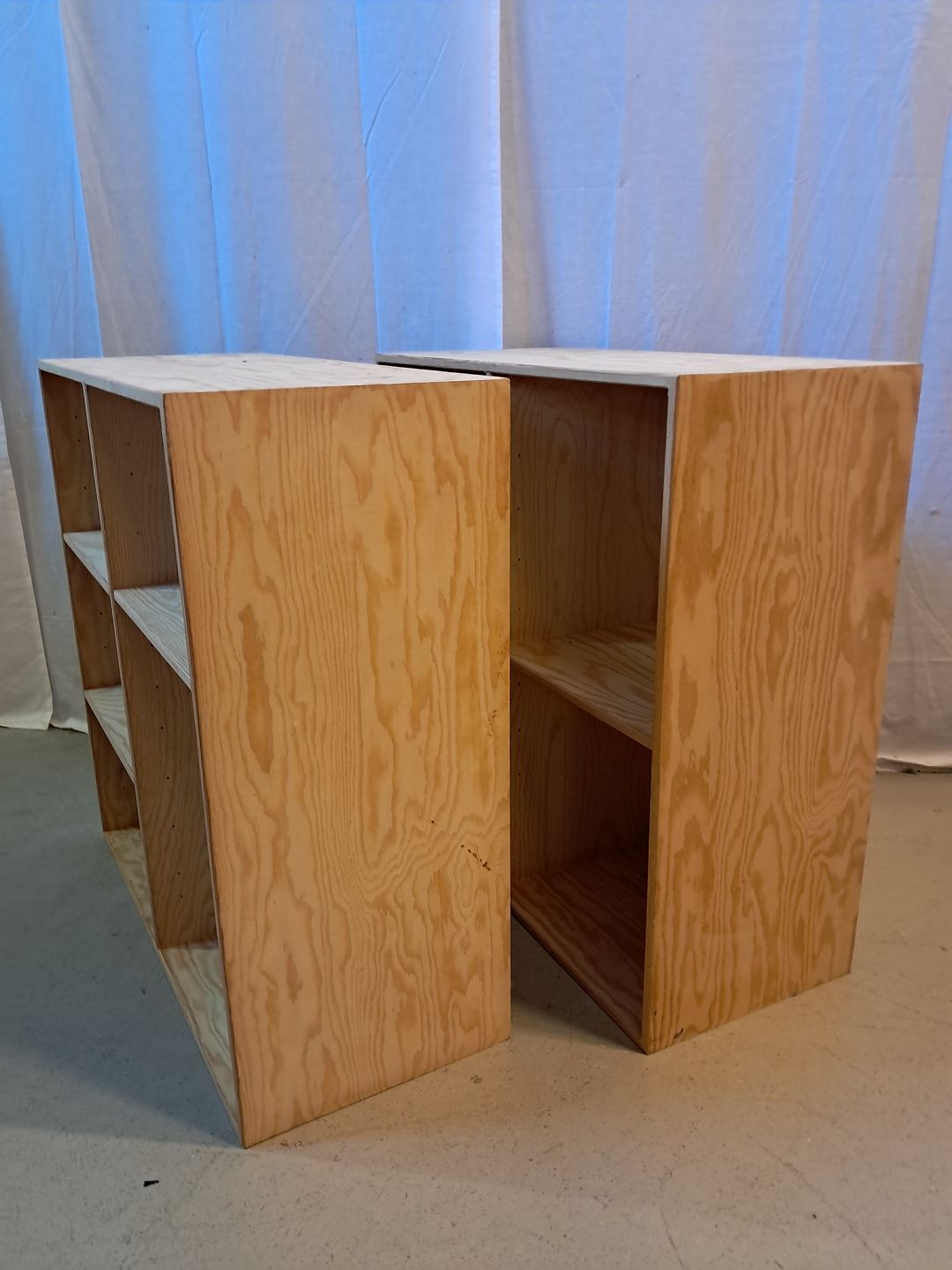 2 Reolkasser i krydsfiner, fra 2000erne.