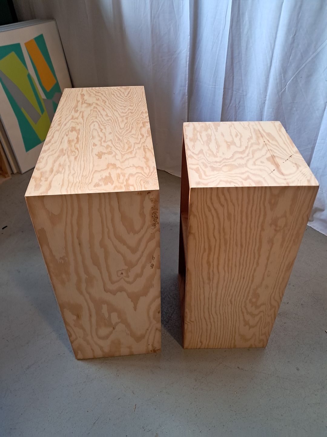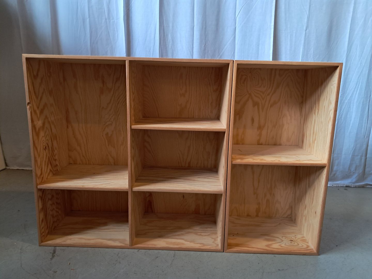 2 Reolkasser i krydsfiner, fra 2000erne.