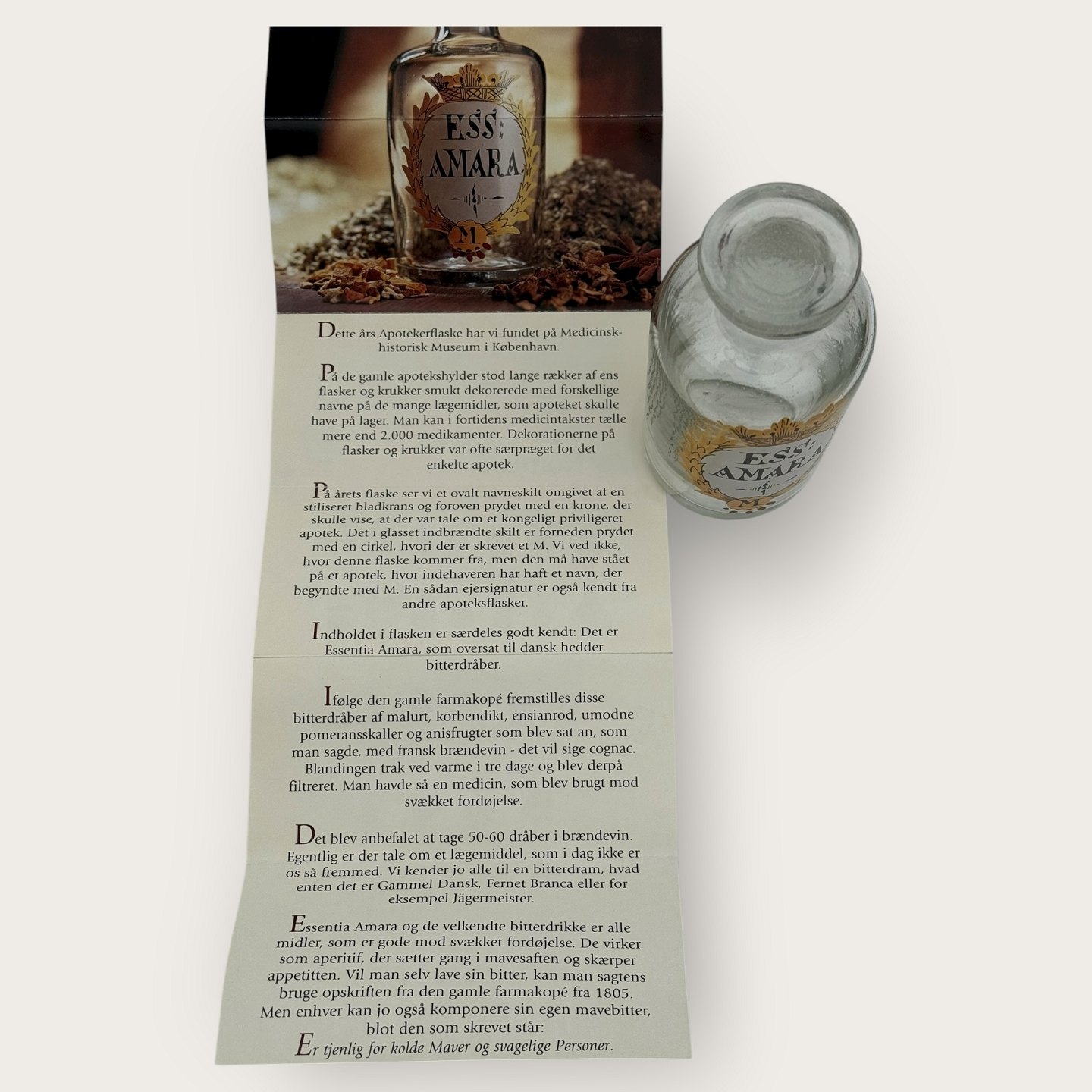 Holmegaard apotekerflaske fra 1997, Ess Amara, Mål: 13x5cm, flaskerne er mundblæste kopier af originale gamle apotekerflasker, Signeret Hg97.
