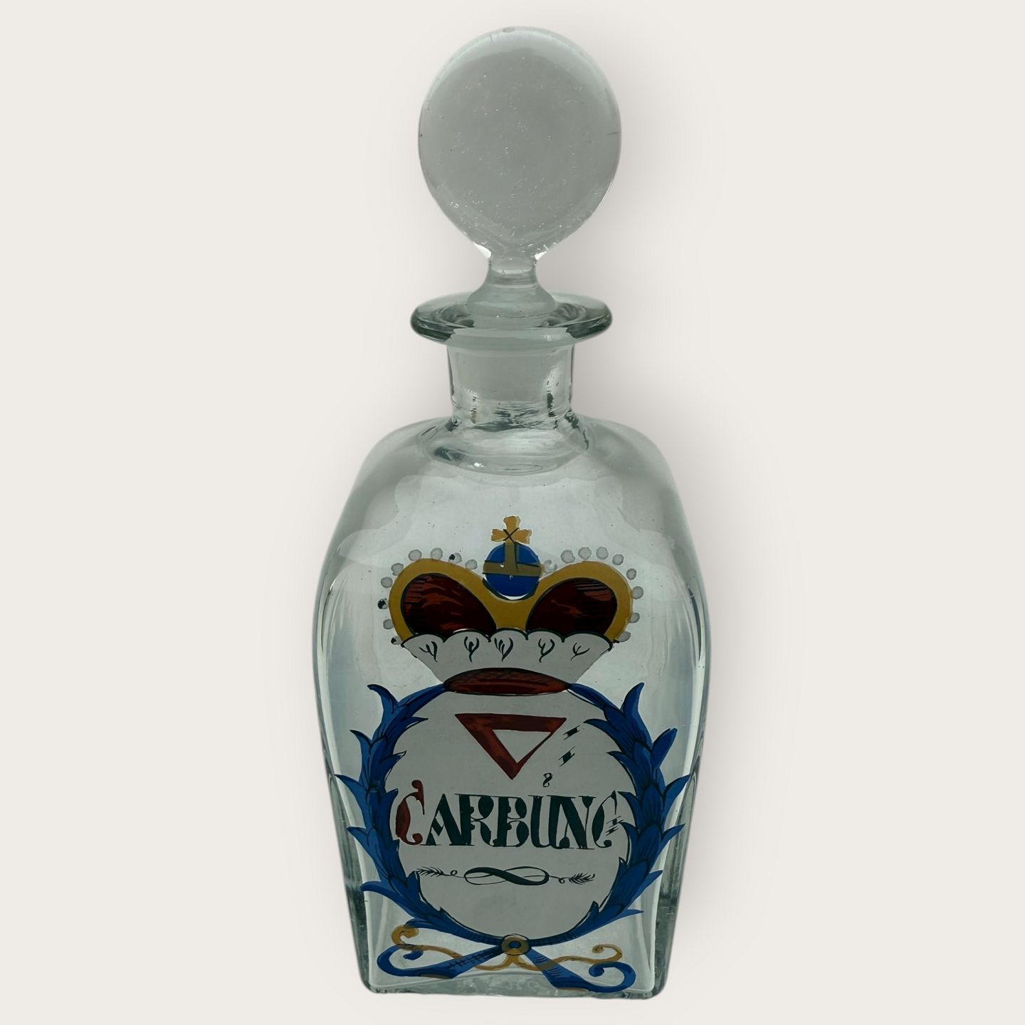 | Holmegaard apotekerflaske fra 1991, Carbunc, Mål: 22x8,5x8,5cm, flaskerne er mundblæste kopier af originale gamle apotekerflasker, Signeret Hg91.