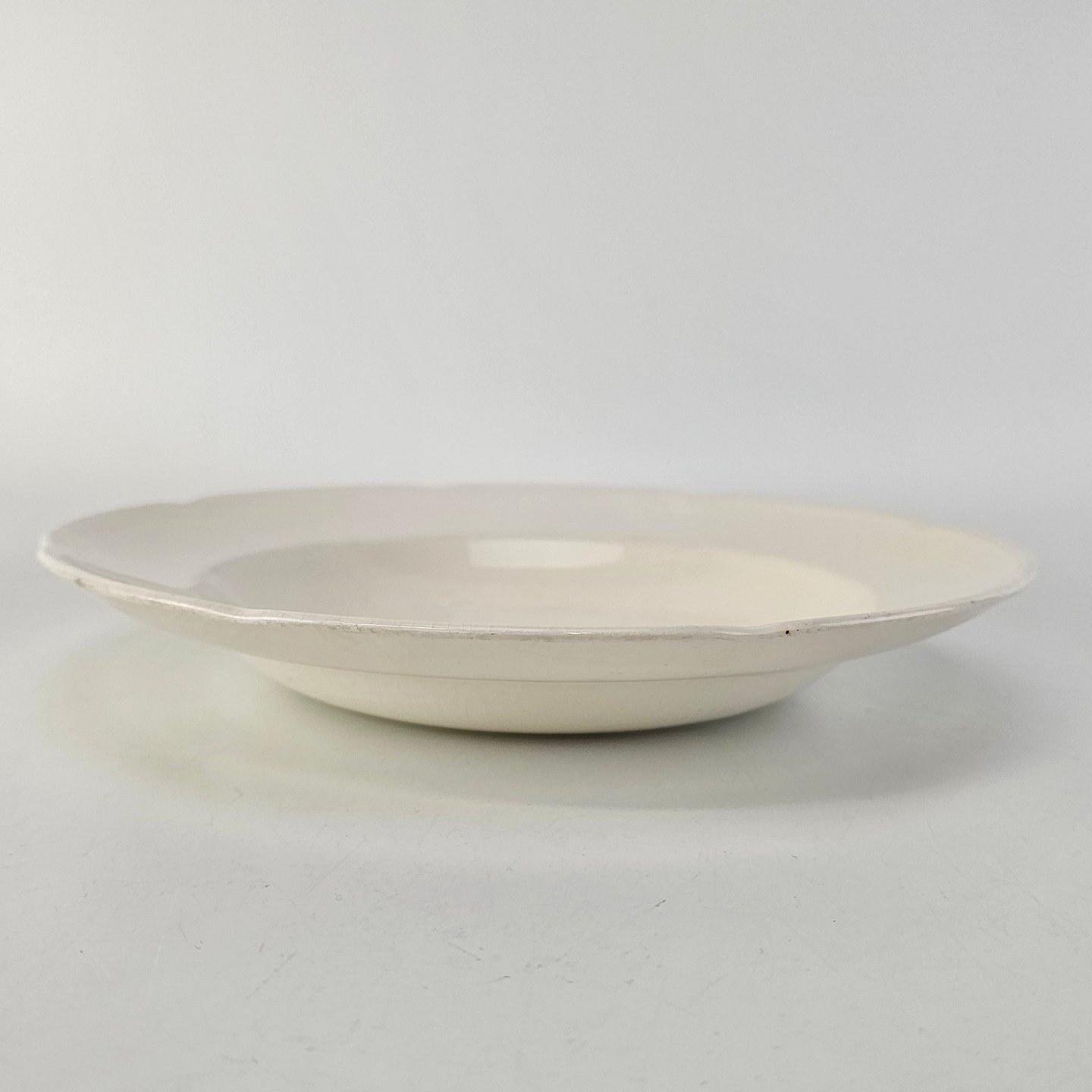 Dyb tallerken i cremefarvet fajance fra stellet Alma