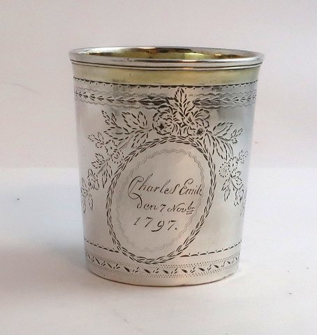 Lorenz Christophersen Linde, born in Bergen. Copenhagen after 1786 and died 1809. Silver goblet with gilding. Height 7.6 cm. Diameter 7 cm.