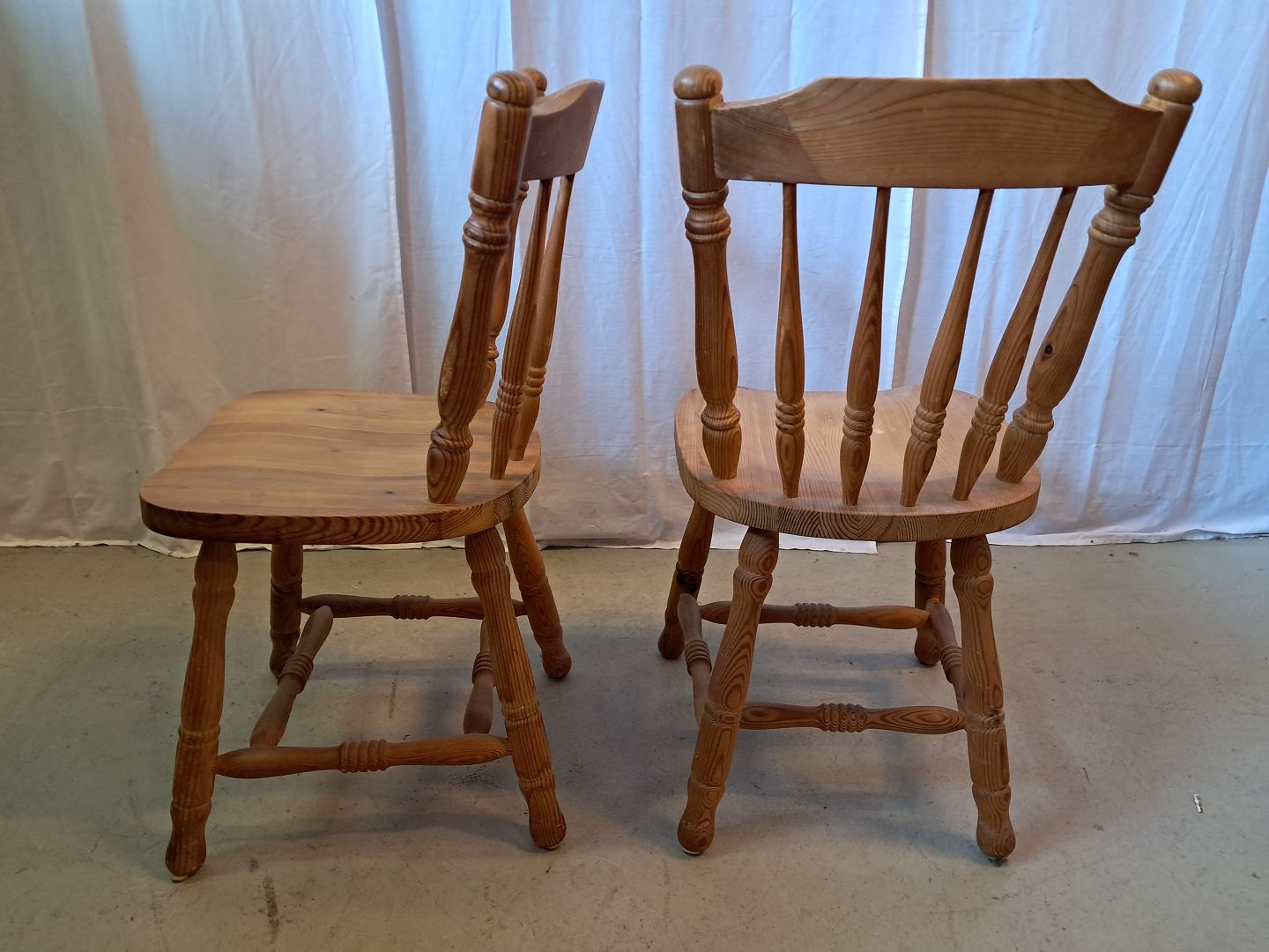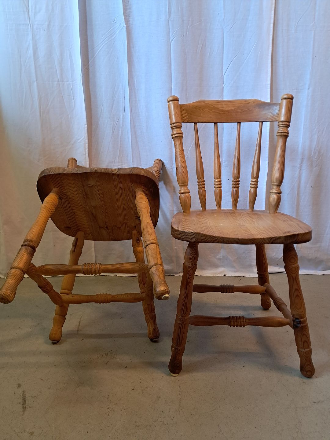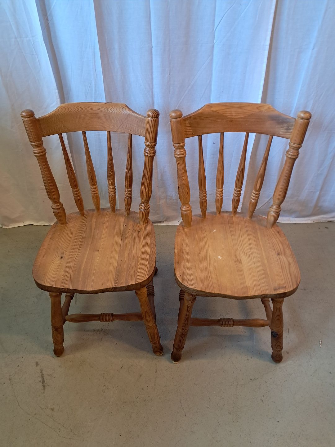 2 Stole i massivt fyrretræ, fra 1980erne.
