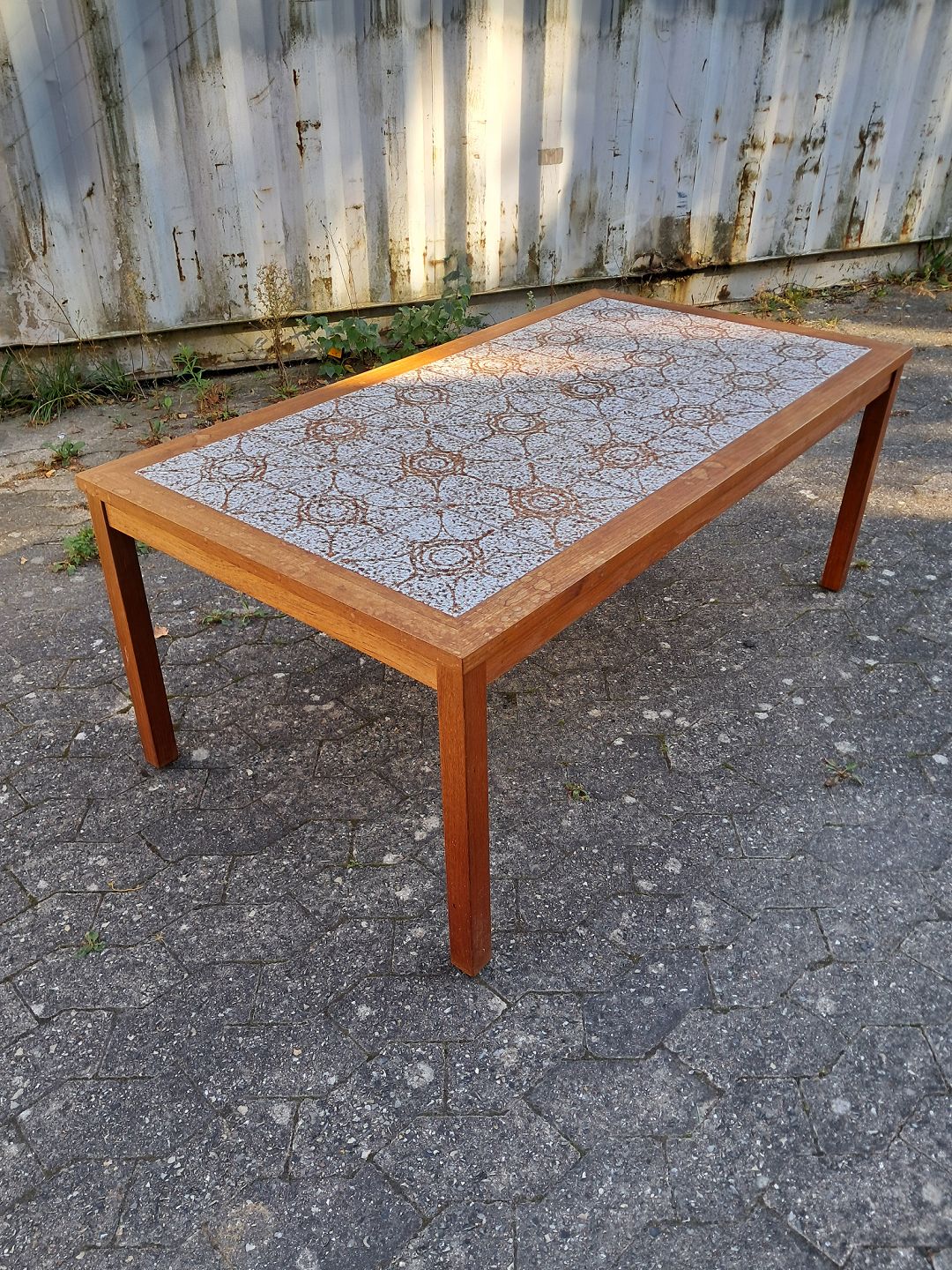 Sofabord i fineret teaktræ med kakler, fra 1960erne.