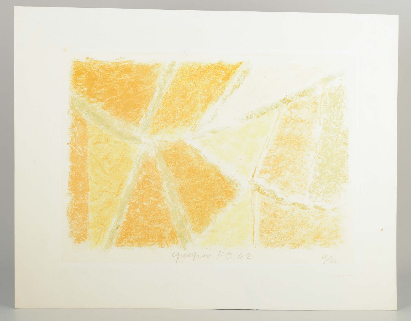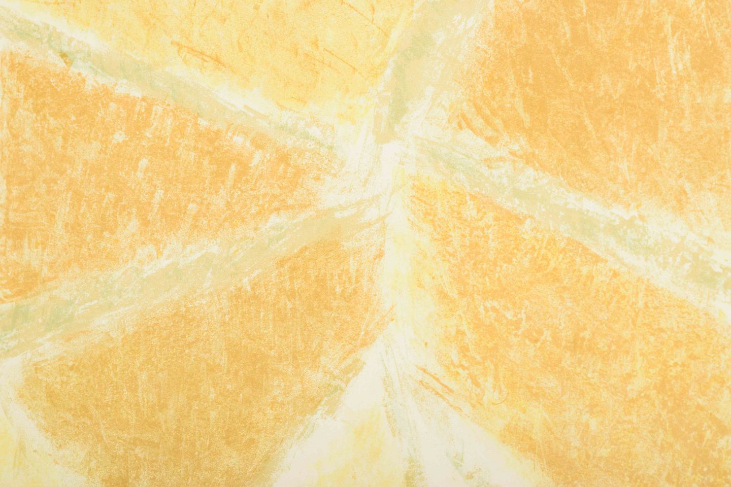 Et lyrisk-abstrakt værk i varme gule og orange nuancer, hvor flader og linjer danner en struktureret, men stadig organisk komposition. Værket er karakteristisk for Christoffersens grafiske arbejder fra begyndelsen af 1960’erne, hvor han eksperimenterede med farveflader og tekstur.