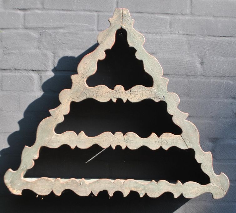 Amagerhylde, 18./19. årh. Danmark. Grøn og rødbemalet fyrretræ. H.: 57,5 cm. B.: 67 cm.