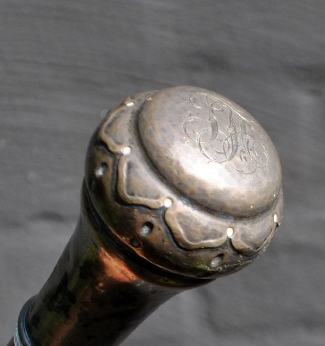 Antiker dänischer Spazierstock, 1919. Mit silbernem Stockkopf. Gestempelt. Mit Gravur: JJC. L.: 89,5 cm.