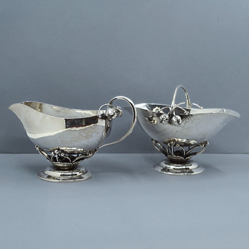 Georg Jensen; A set with sugar bowl and creamer of sterling silver, No 235 B
