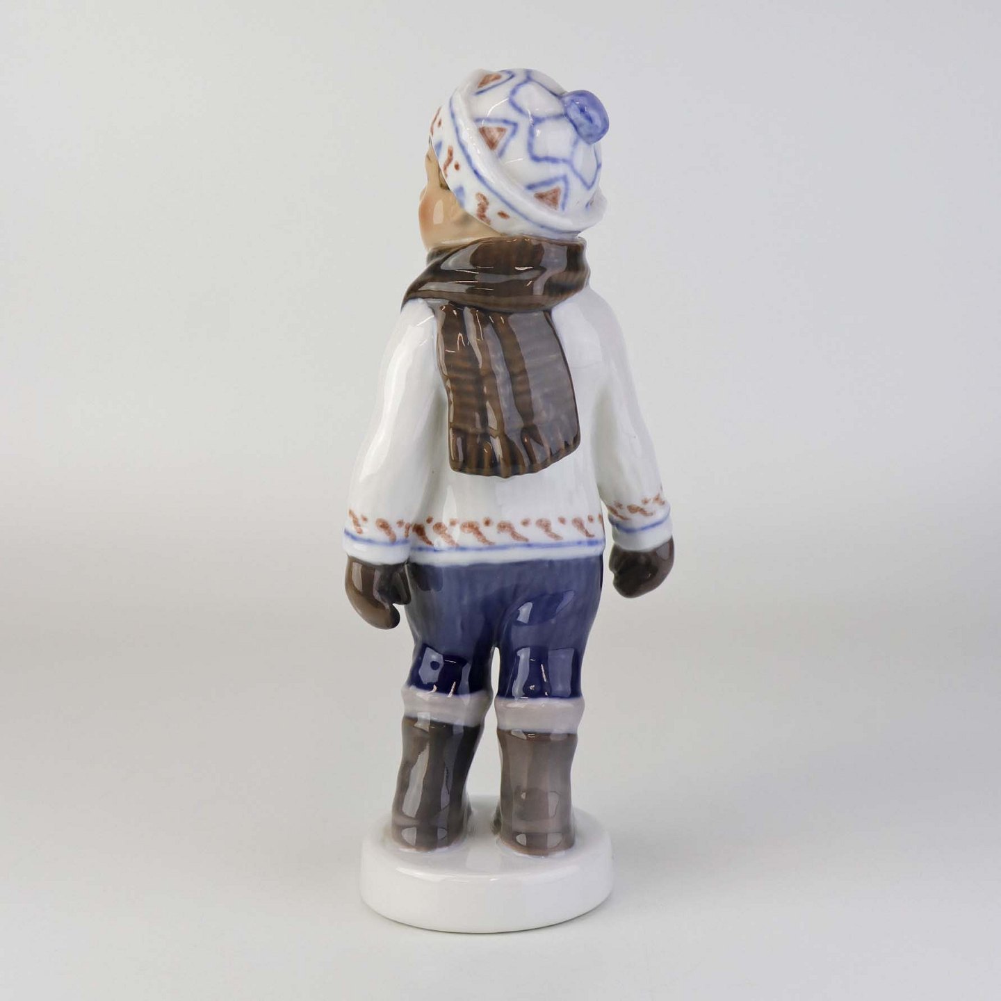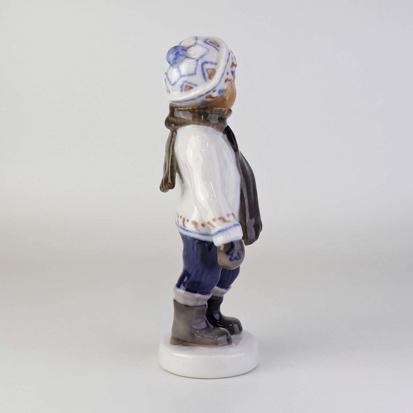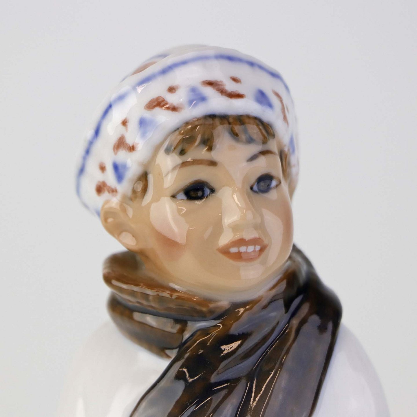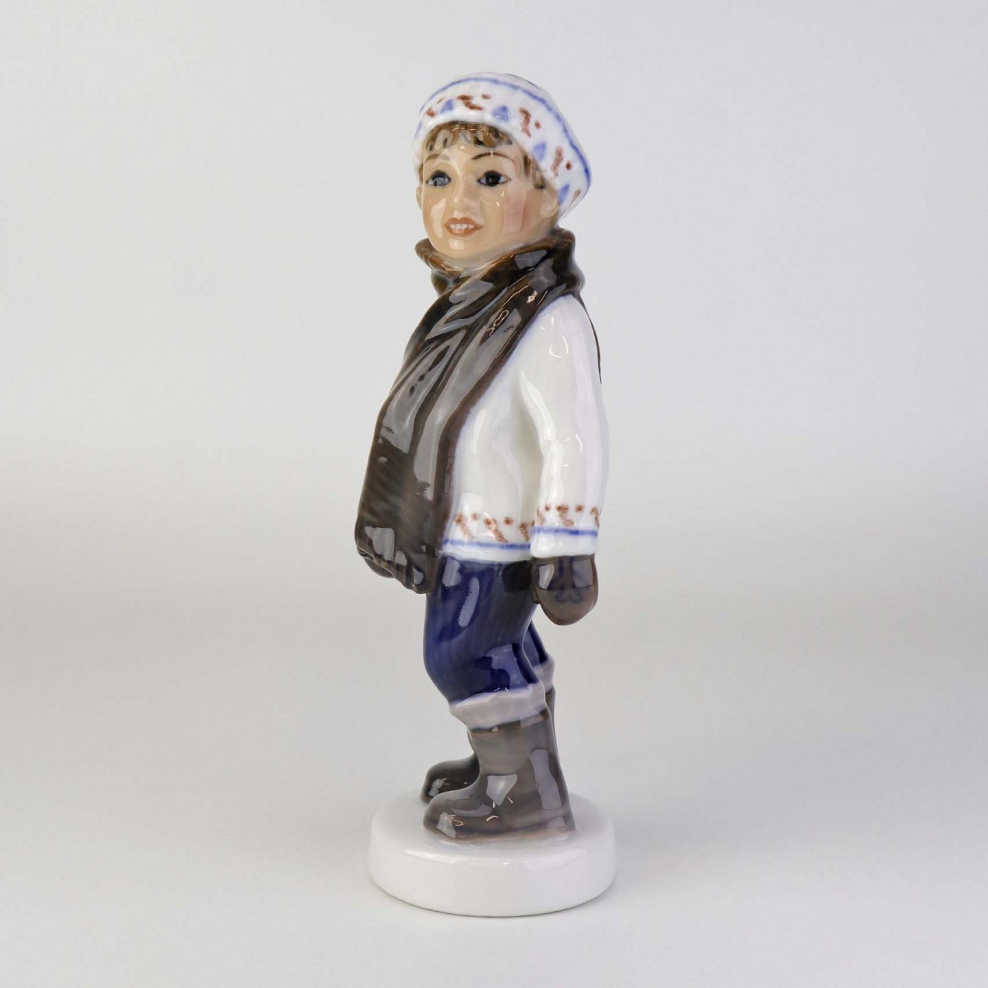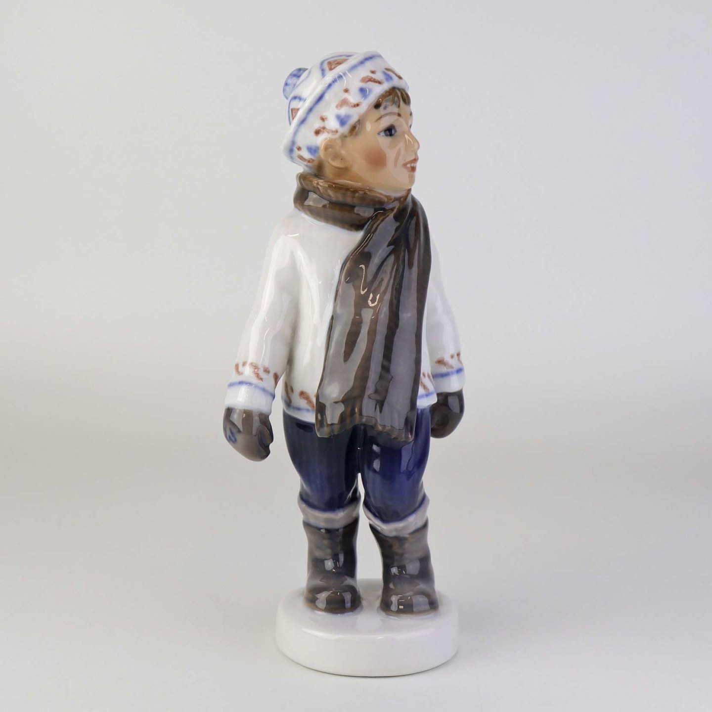 Figur i porcelæn med titlen dreng med halstørklæde. Nr. 1064