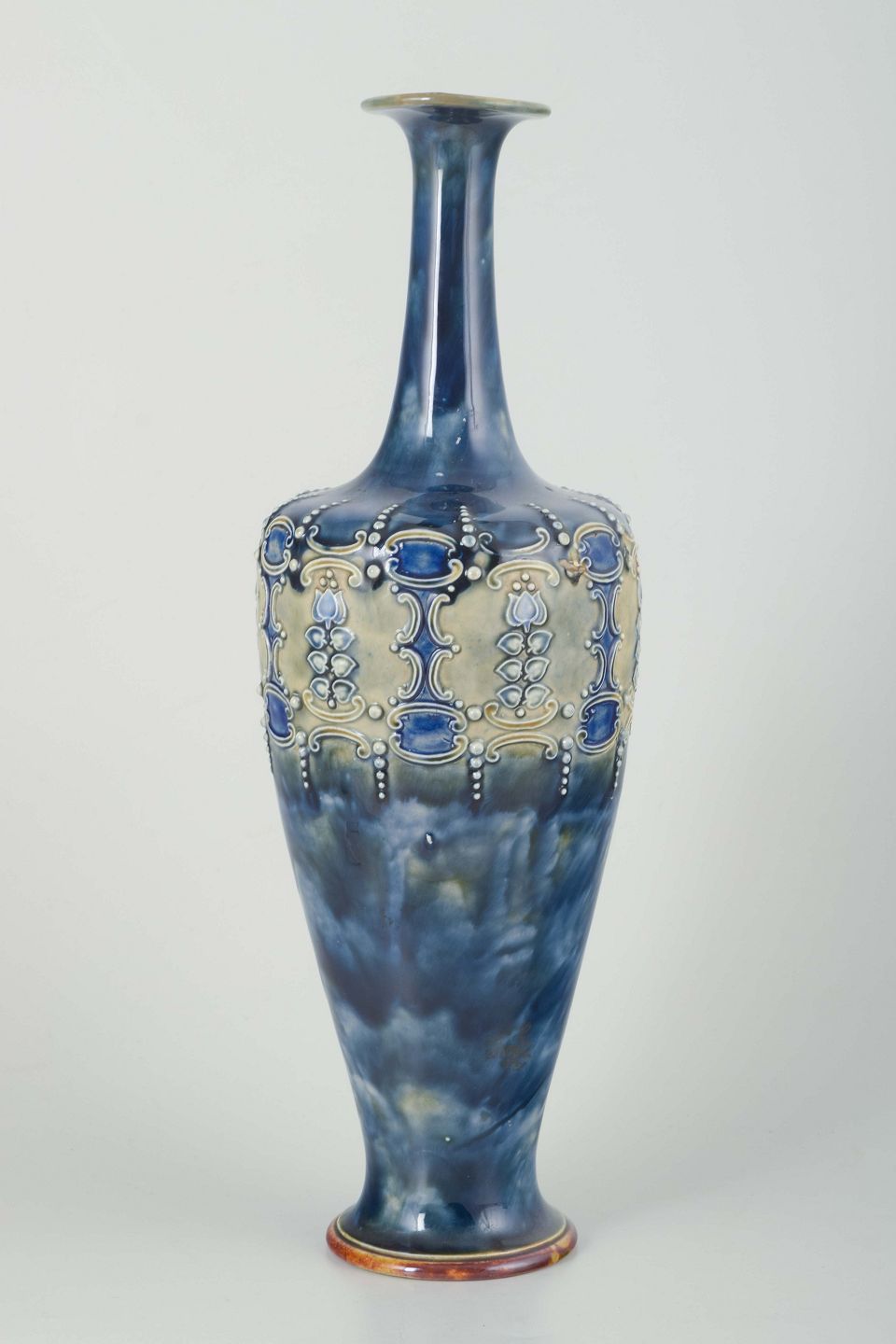 Royal Doulton blev grundlagt i 1815 i Lambeth, London, og blev hurtigt en af Englands førende porcelæns- og stentøjsproducenter. I begyndelsen af 1900-tallet var virksomheden kendt for sine kunstneriske vaser og skønvirke-inspirerede designs, hvor håndværk og dekoration smelter sammen i en tidstypisk jugendstil. I 1920’erne udviklede Royal Doulton en mere international stil, der fastholdt elementer af art nouveau og skønvirke, kombineret med tidens eksperimenterende glasurer.