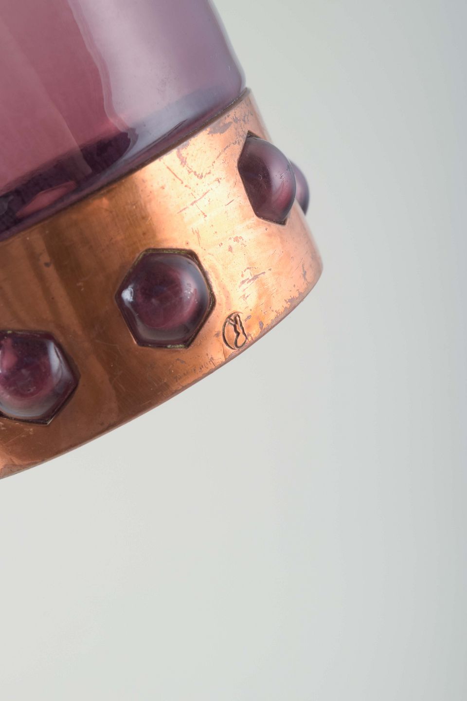 Vase i violet glas og kobber. Midten af 1900-tallet.