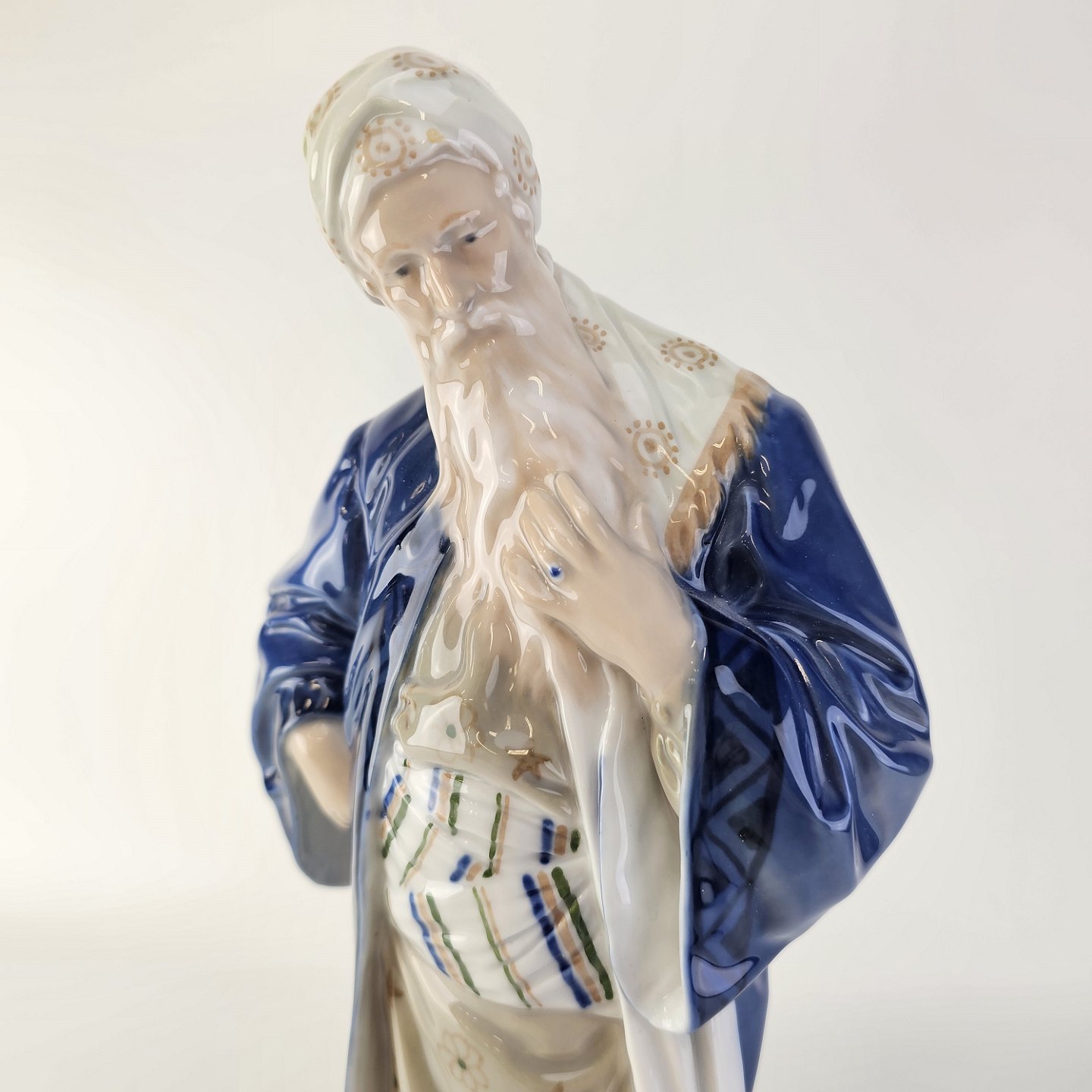 Nathan den vise figur af porcelæn med motiv af en ældre mand med langt hvidt skæg