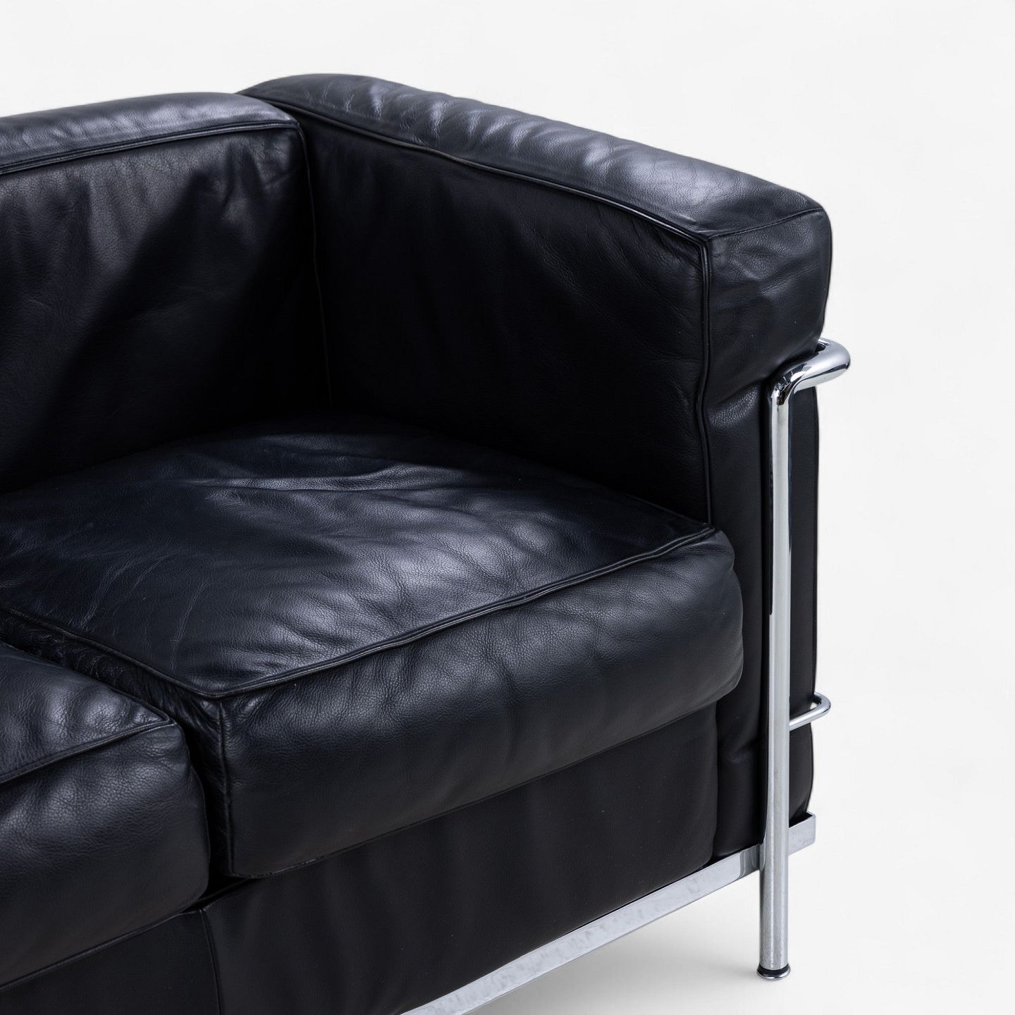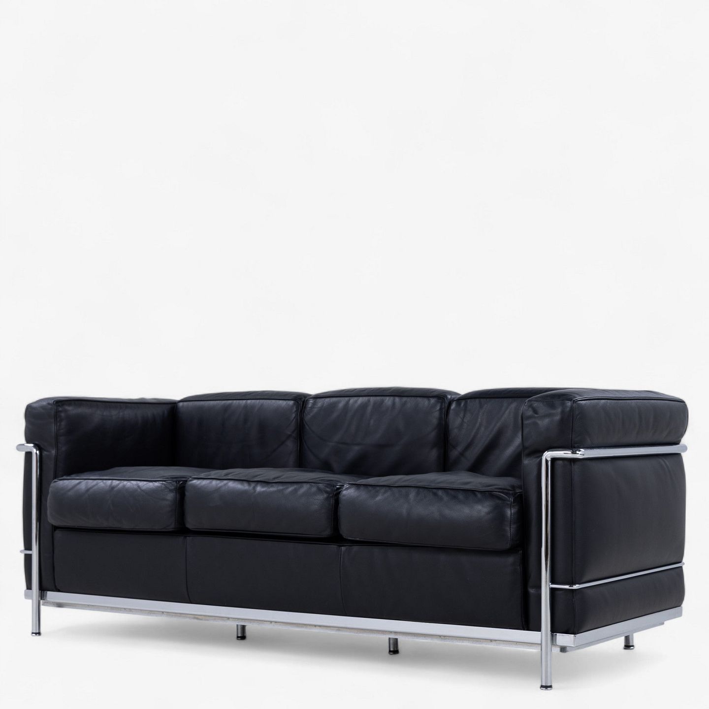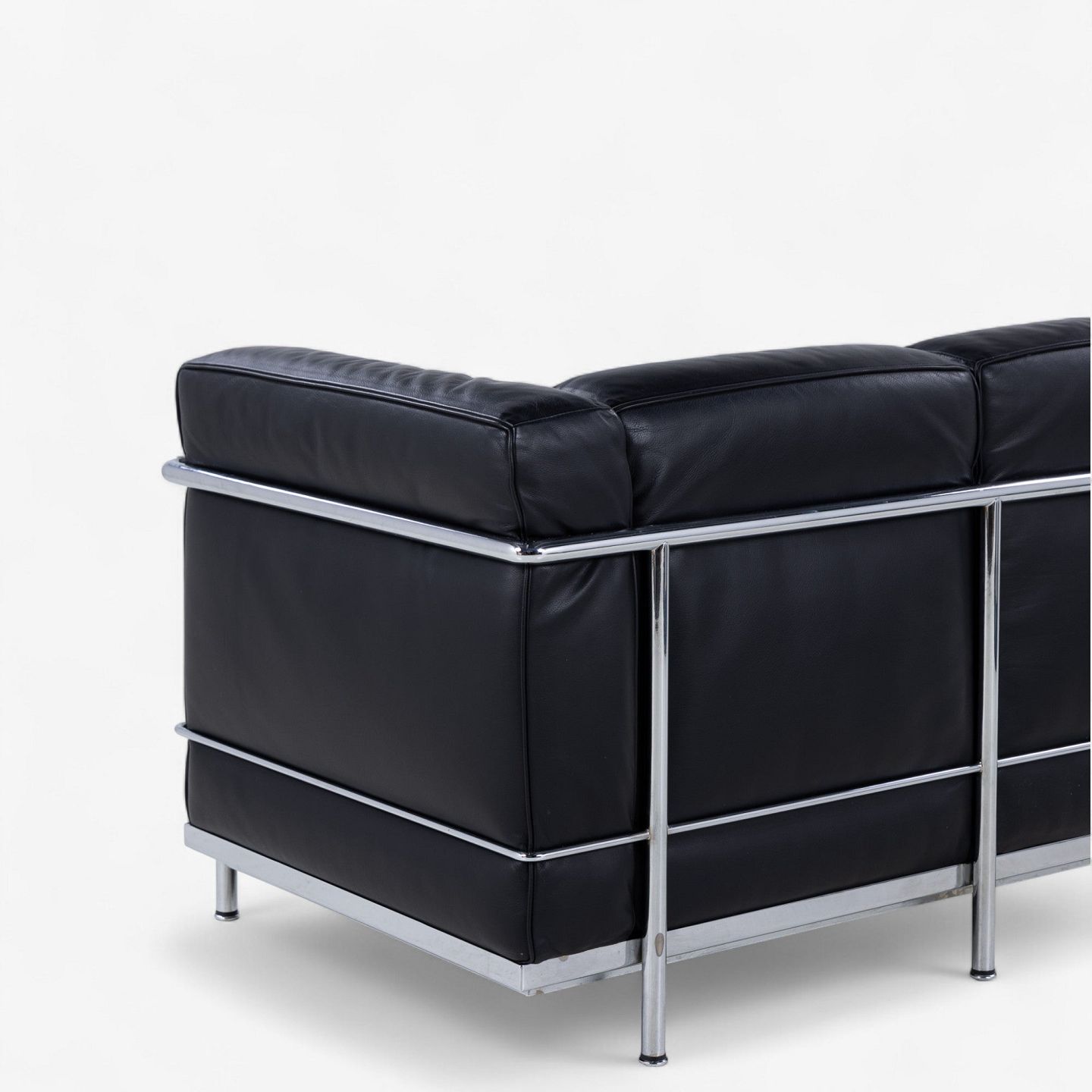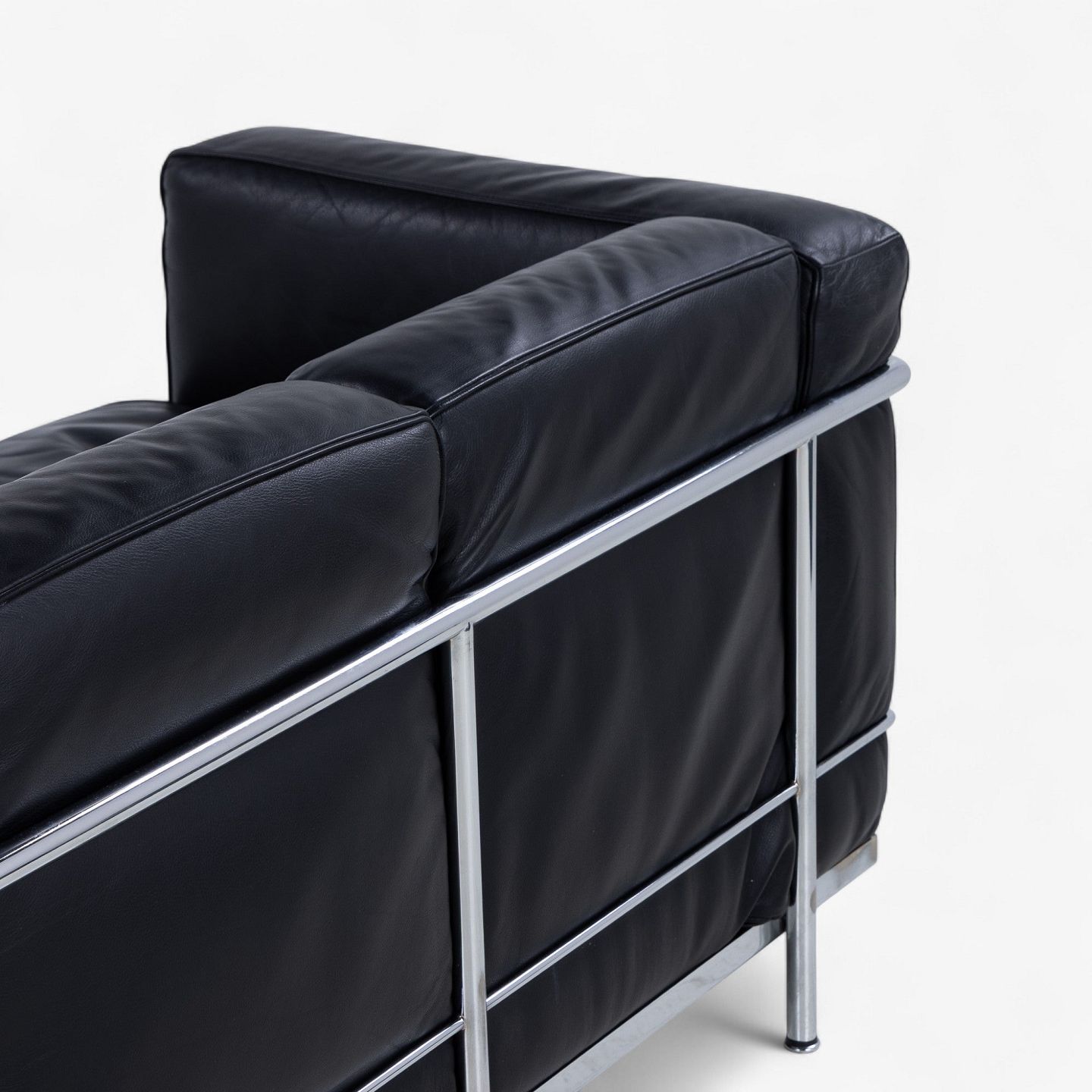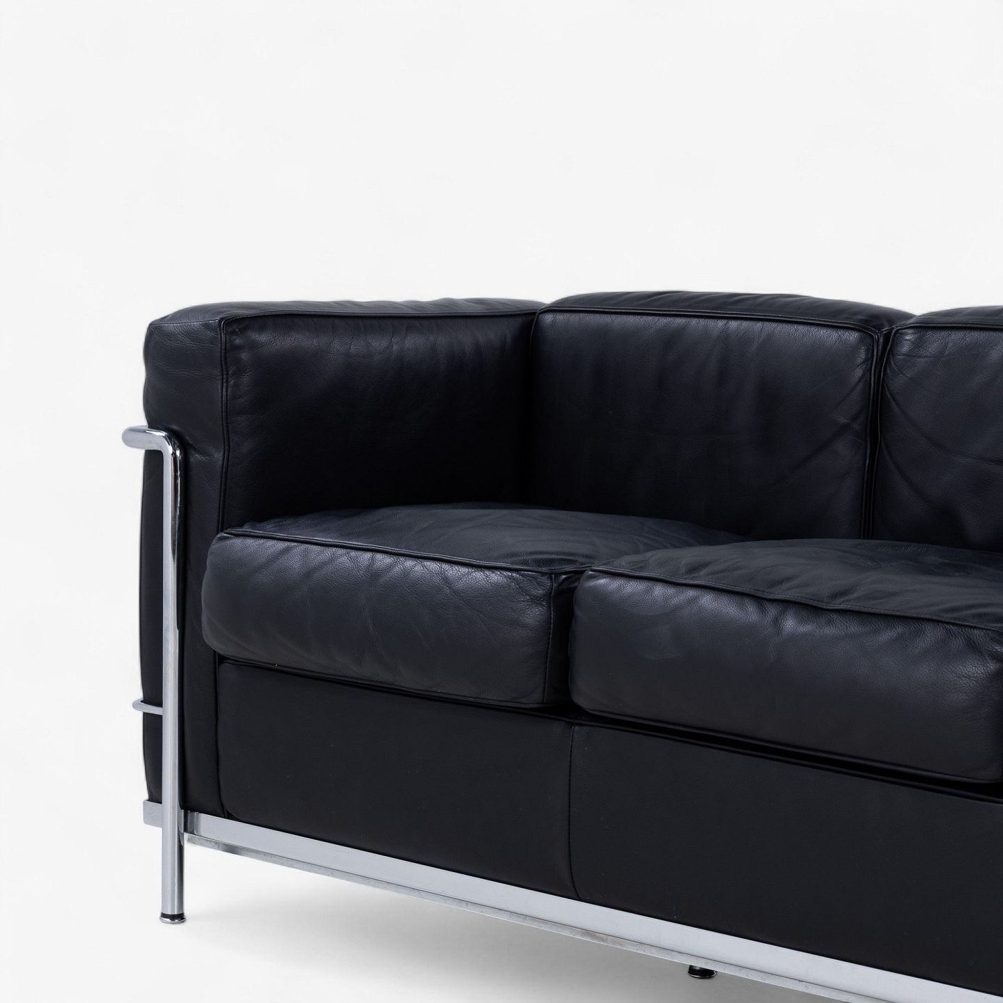 LC 2/3 - 3. pers sofa i originalt sort læder med stel i stål. Stemplet fra producent.