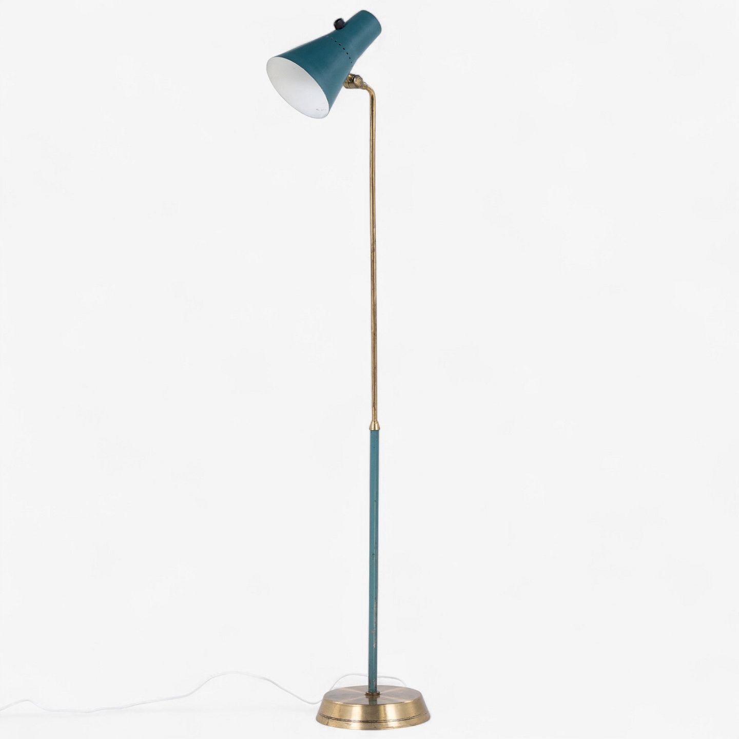 Model KLK 2851 - Gulvlampe i patineret messing og grønlakeret metal.