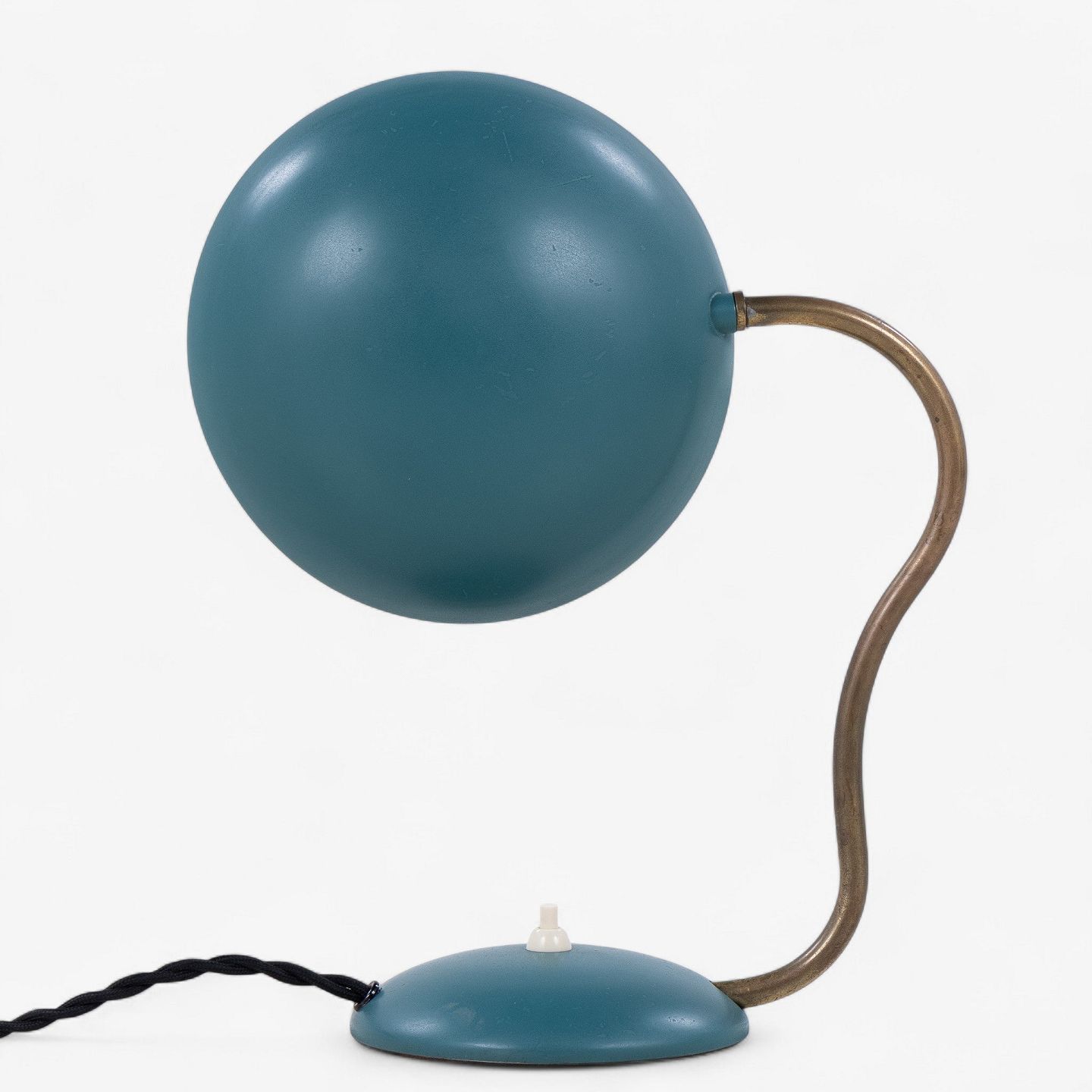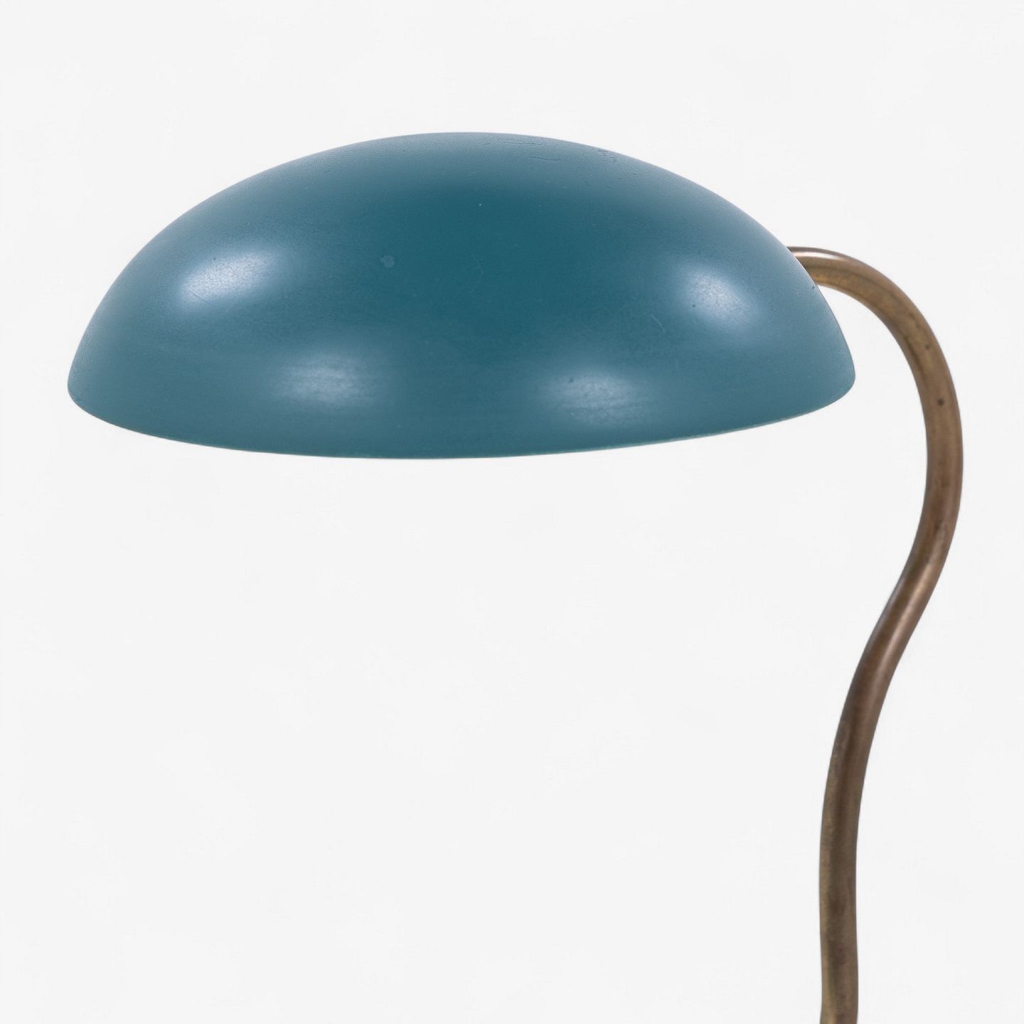 Model E1325 - Bordlampe i grønlakeret metal med justerbar arm i messing.