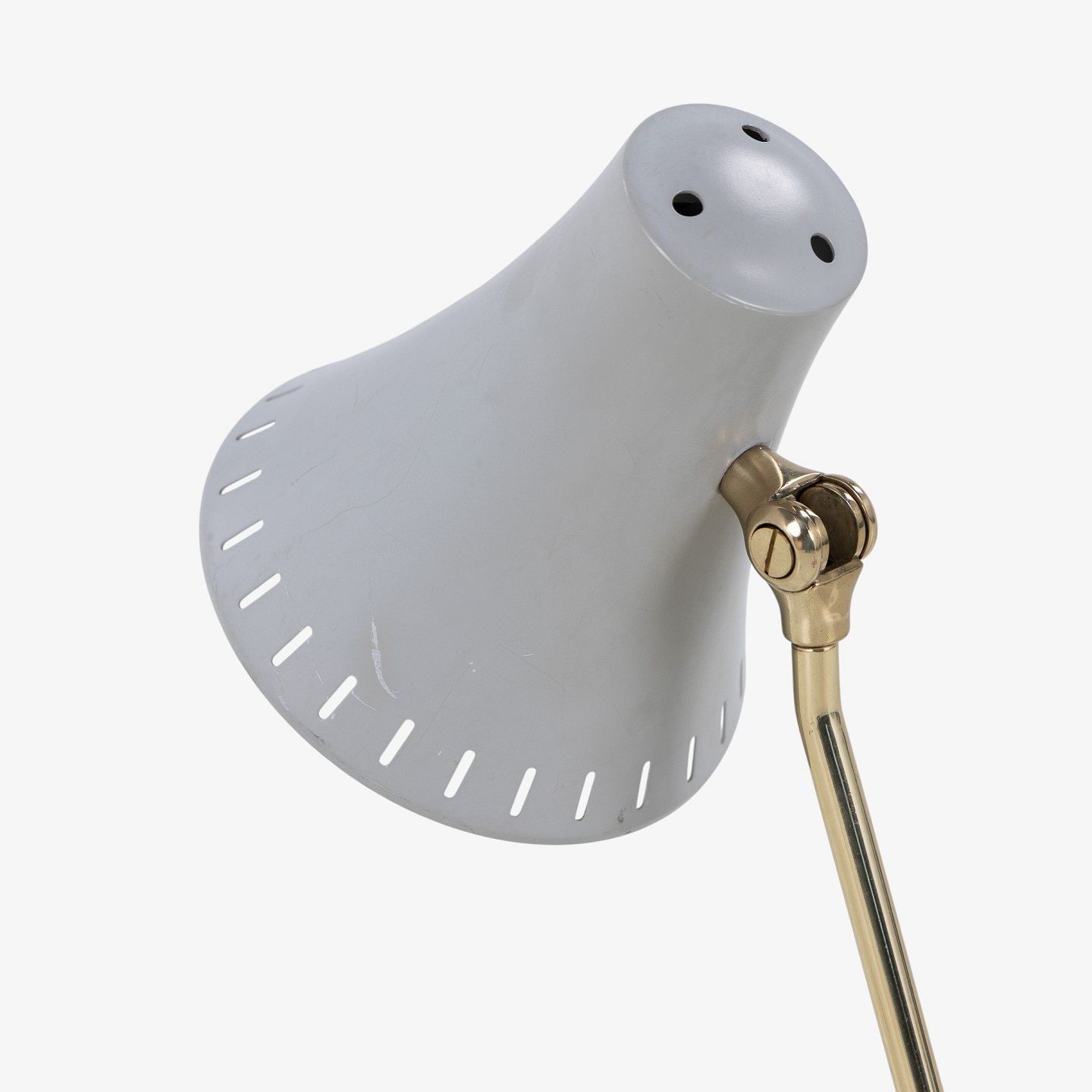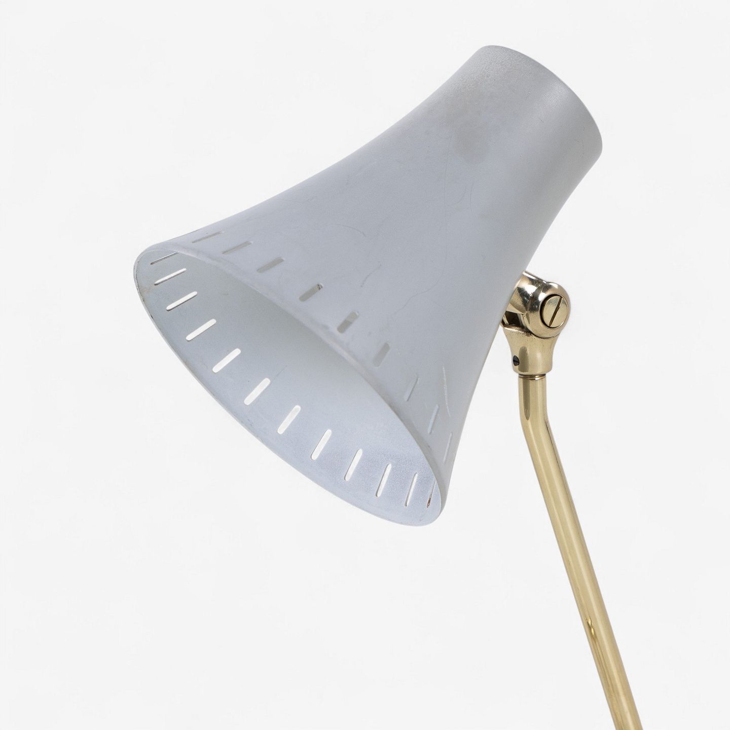 Model 8256 - Bordlampe med stel i messing og skærm i grålakeret metal. Fra 1950'erne.