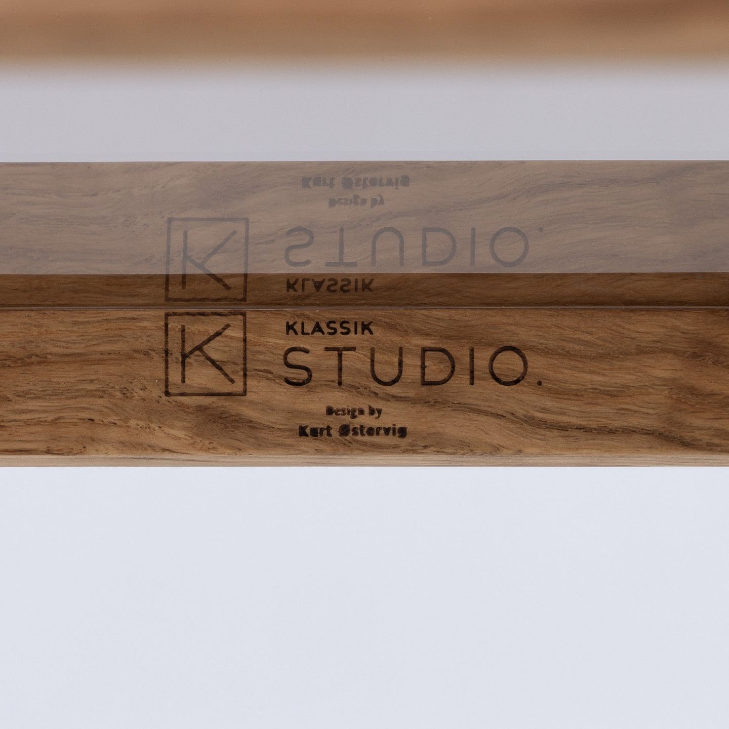 'Kubebord' med stel i olieret egetræ og røgfarvet glasplade.