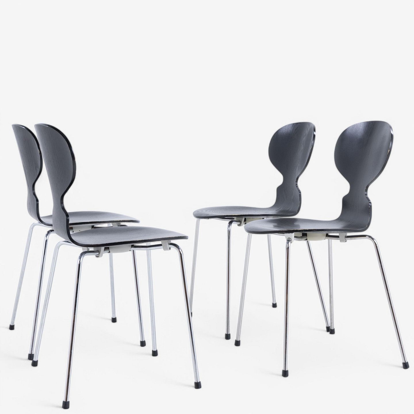 AJ 3100 - Sæt á 4 sortlaserede Myrestole med stel i stål.