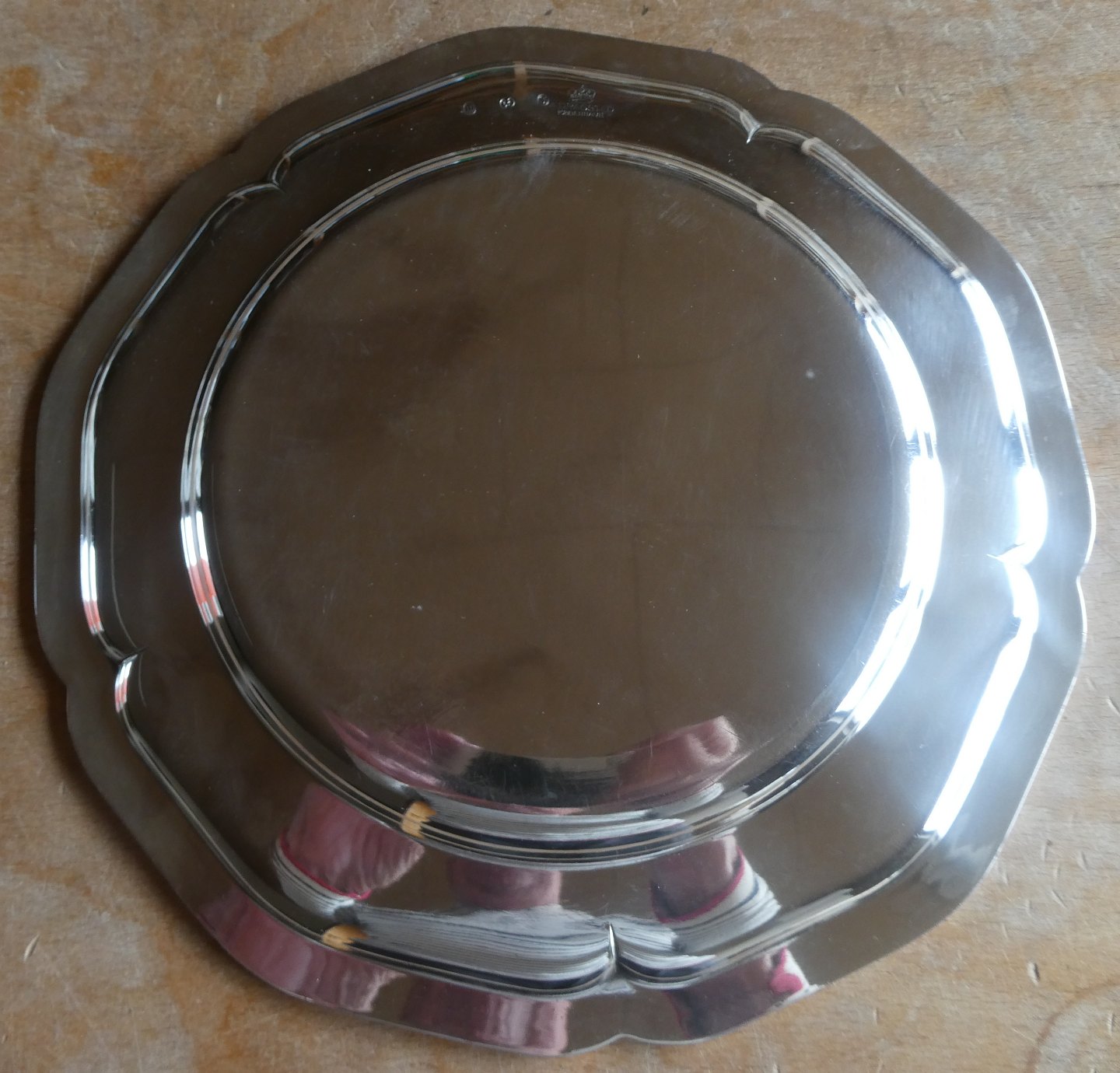 A. Dragsted, Kgl. Hofjuveler & Cohr dækketallerken 25,5cm i tretårnet sølv fra år 1935.