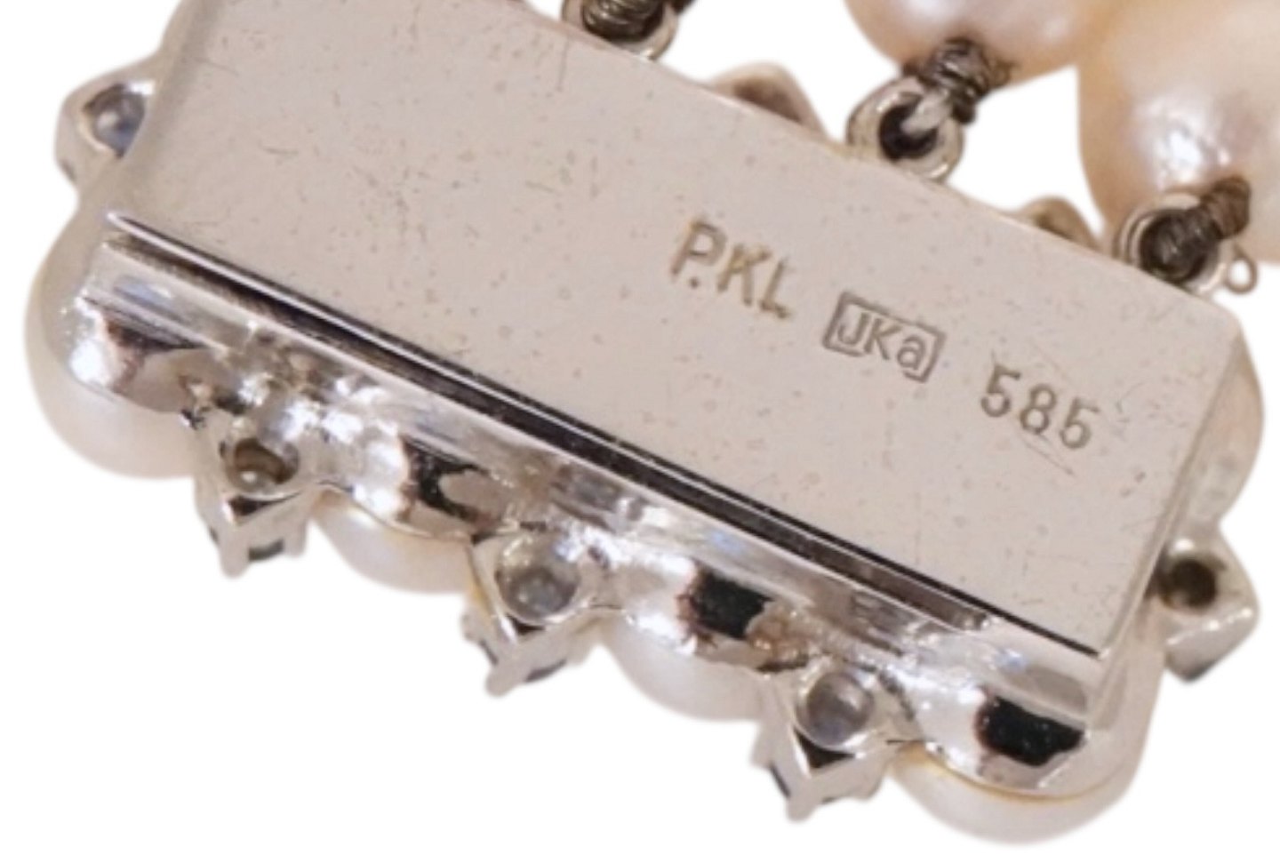 Dobbeltradet perle armbånd af store japanske rosa Akoja perler med 14 karat hvidgulds vedhæng med safirer