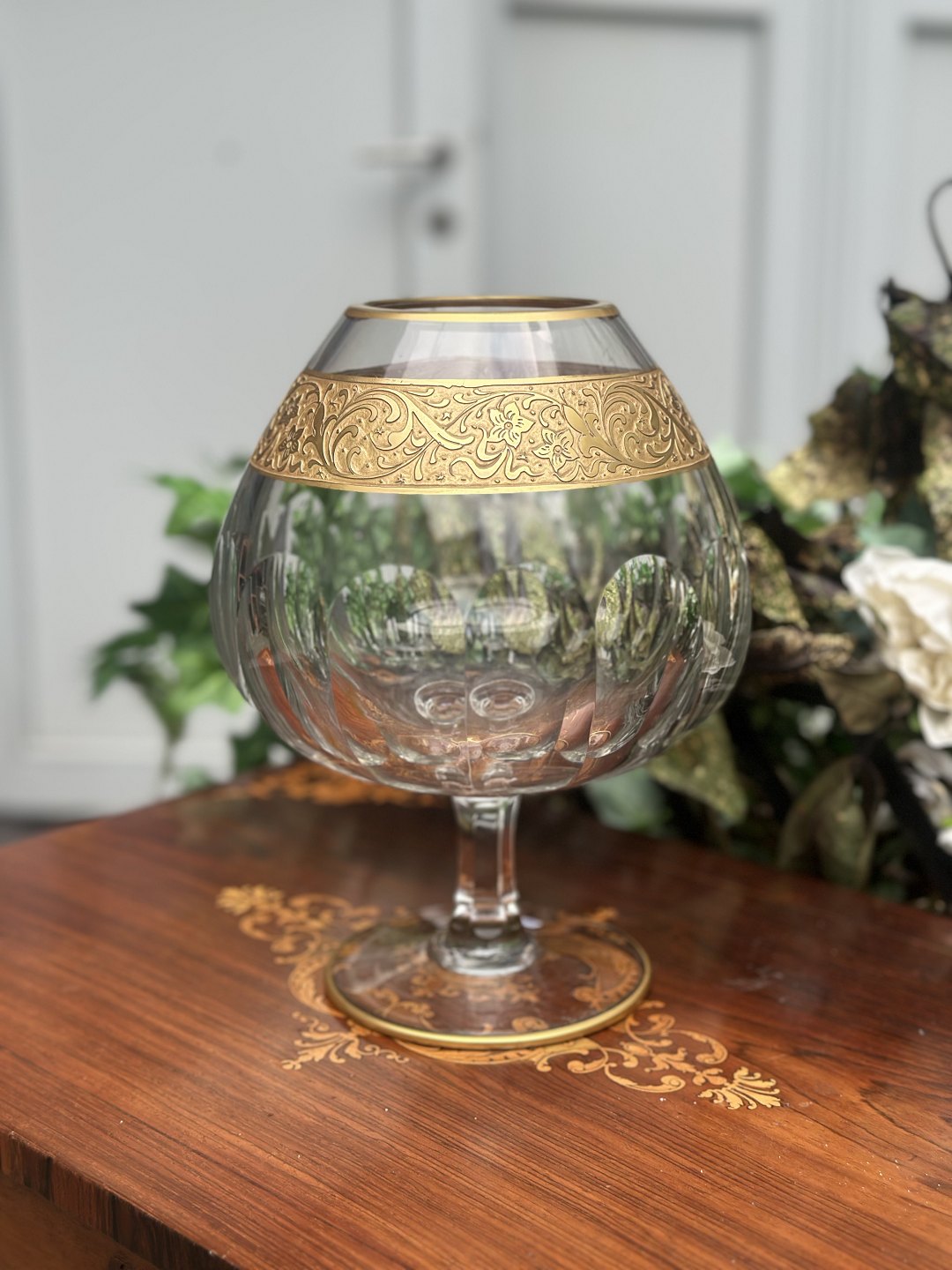 Moser glas pokal krystal , meget høj kvalitet fra midten af 1900 tallet , bredt bånd af forgyldt 24k guldemalje med indgraverede blomster i klassisk barok