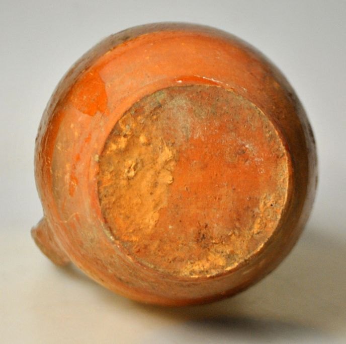 Antik dansk ler kande, 19. årh. Rødler med brune og hvide glasurer. H.: 19 cm.