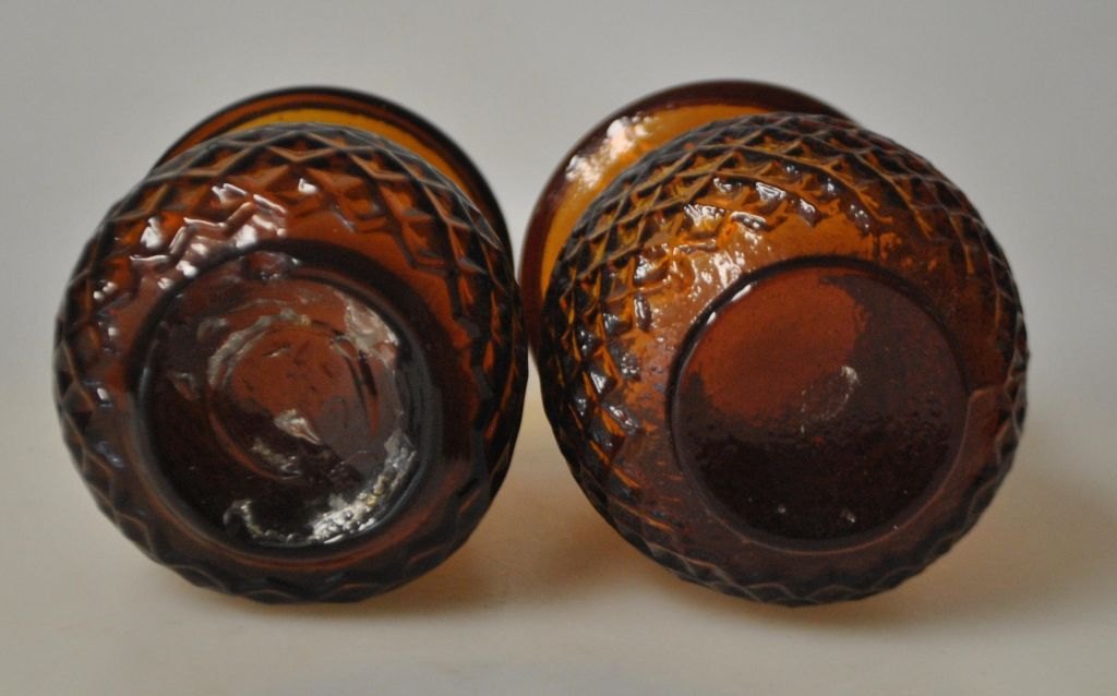 2 Illuminations glas, ravfarvet, 19. årh. Danmark. H: 9,5 cm.