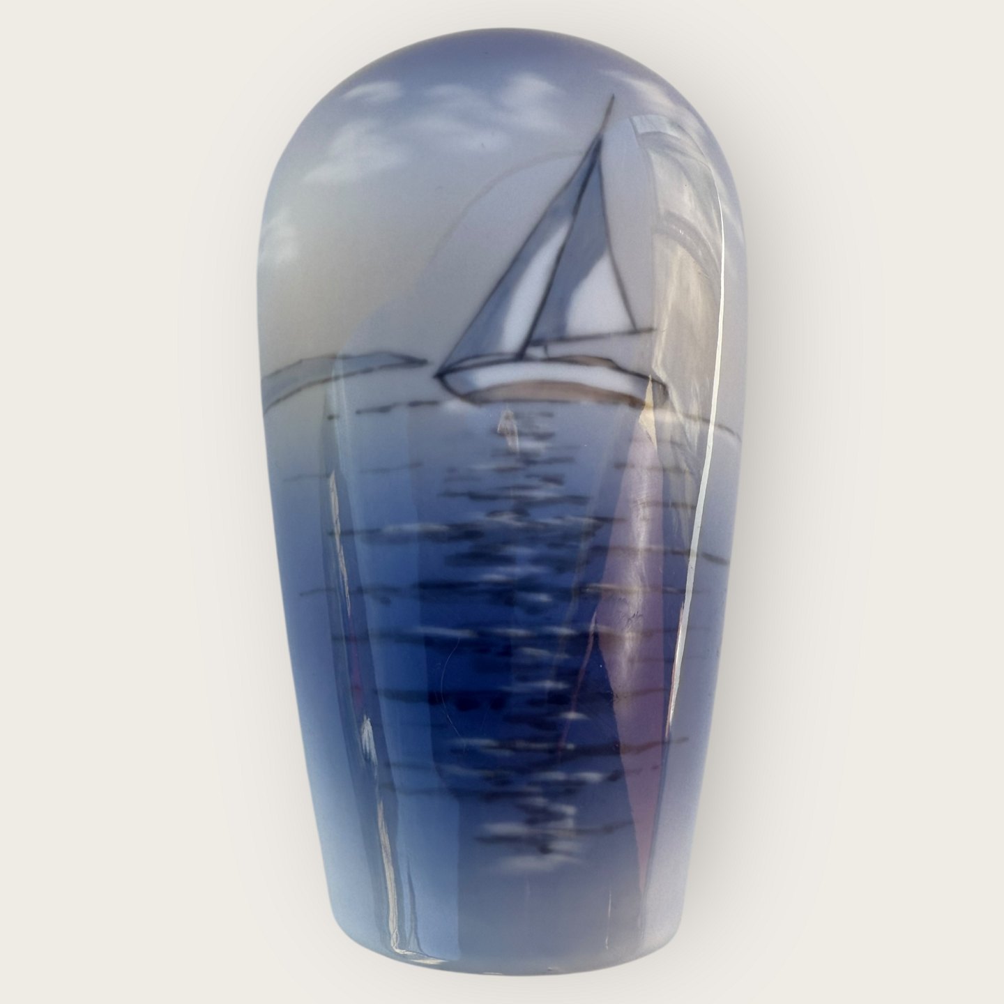 Lyngby vase med sejlskib, #128-2, højde 17,5cm, fin stand