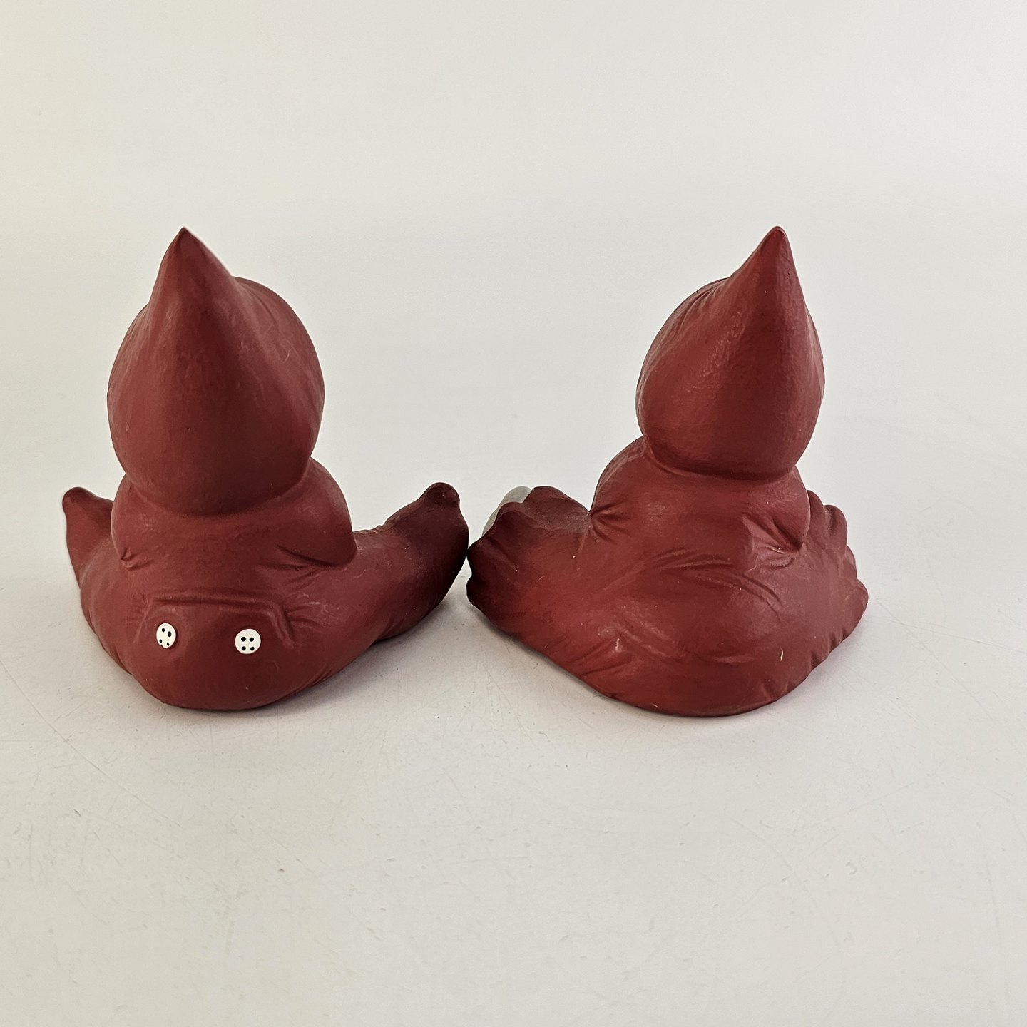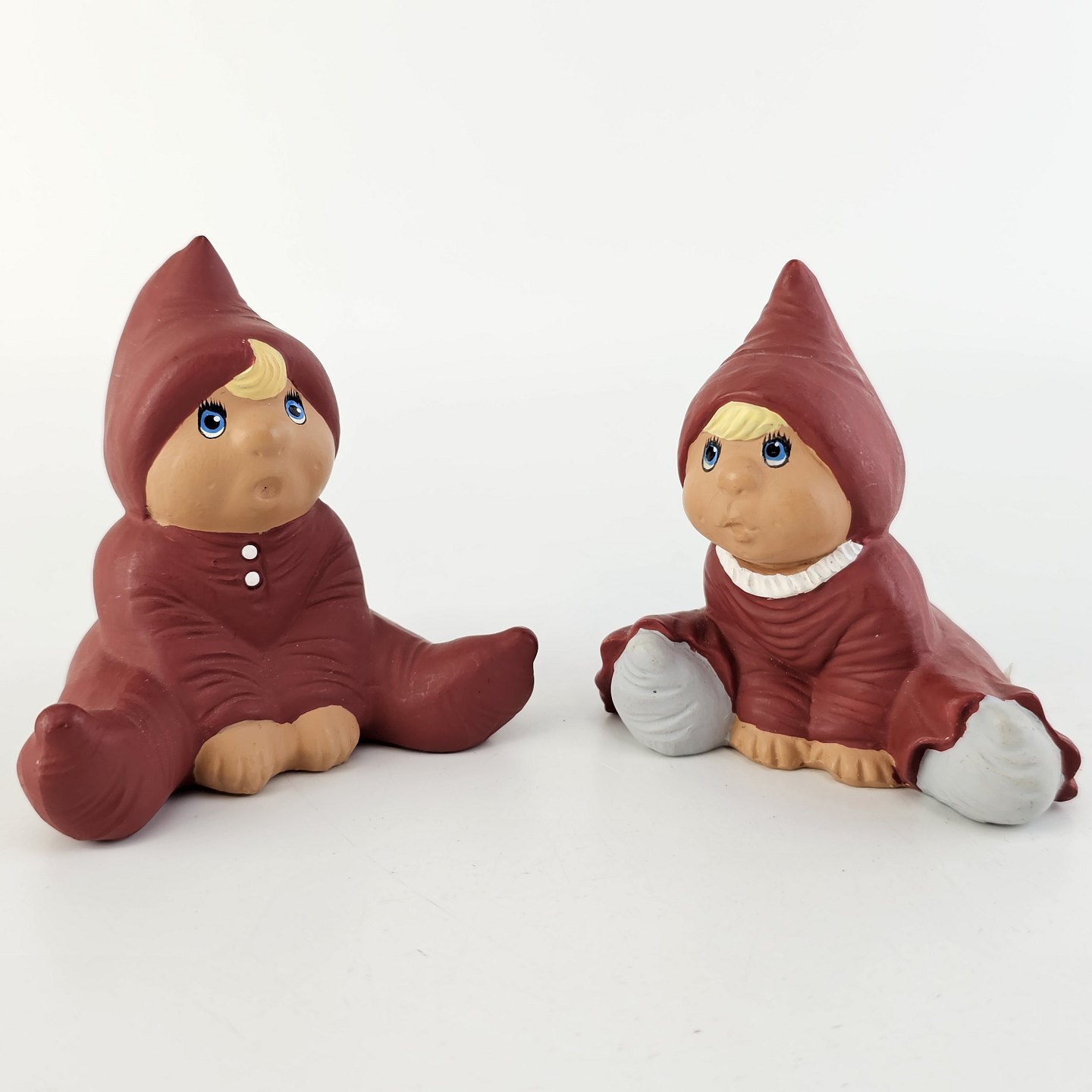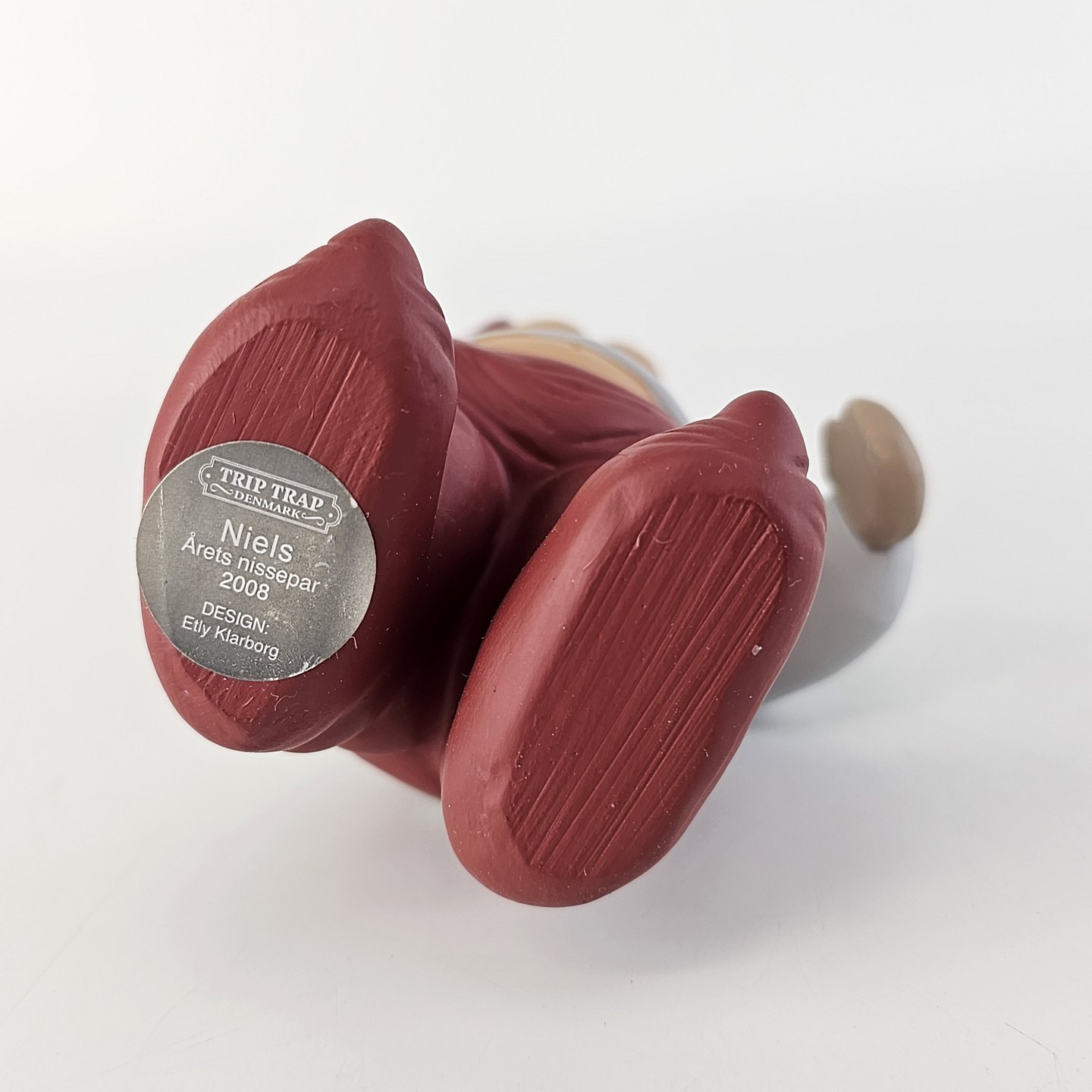 Figurer med motiv af nisserne Bette Inger, Bette Knud og Niels med ski