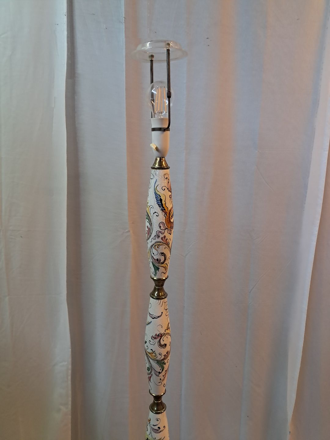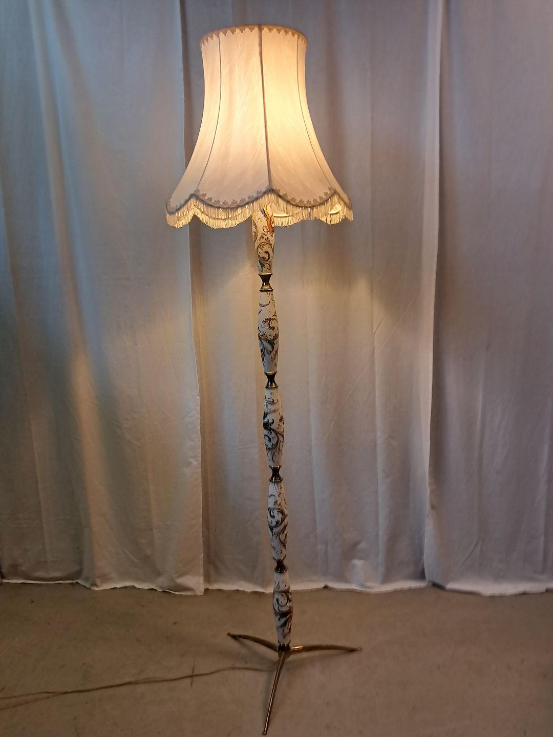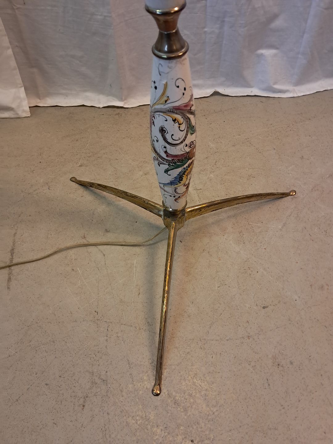 Gulvlampe i metal og pocelæn med skærm, fra 1980erne.