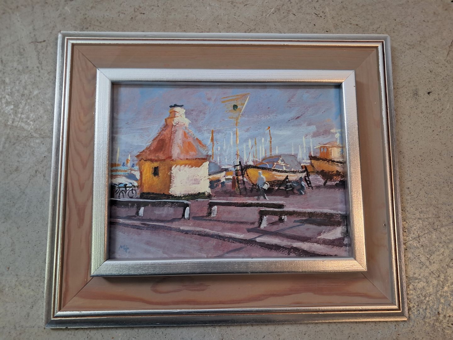 Maleri af Dragør Havn i sølvmalet ramme, af : Mogens Amdi Thorsen (1924-2016)
