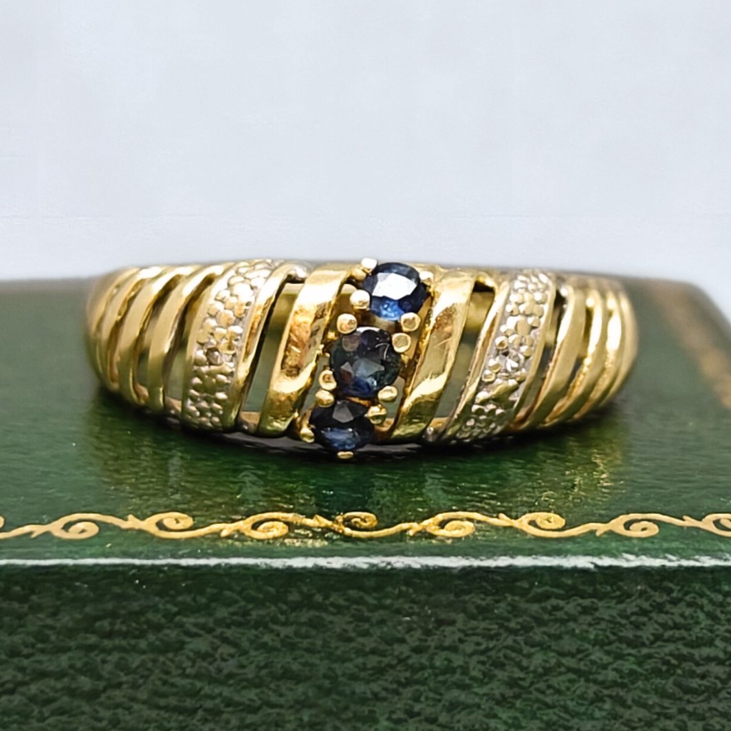 Ring i 14 kt. guld med safirer og diamanter |