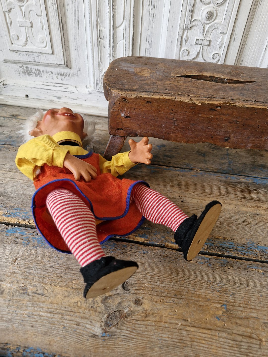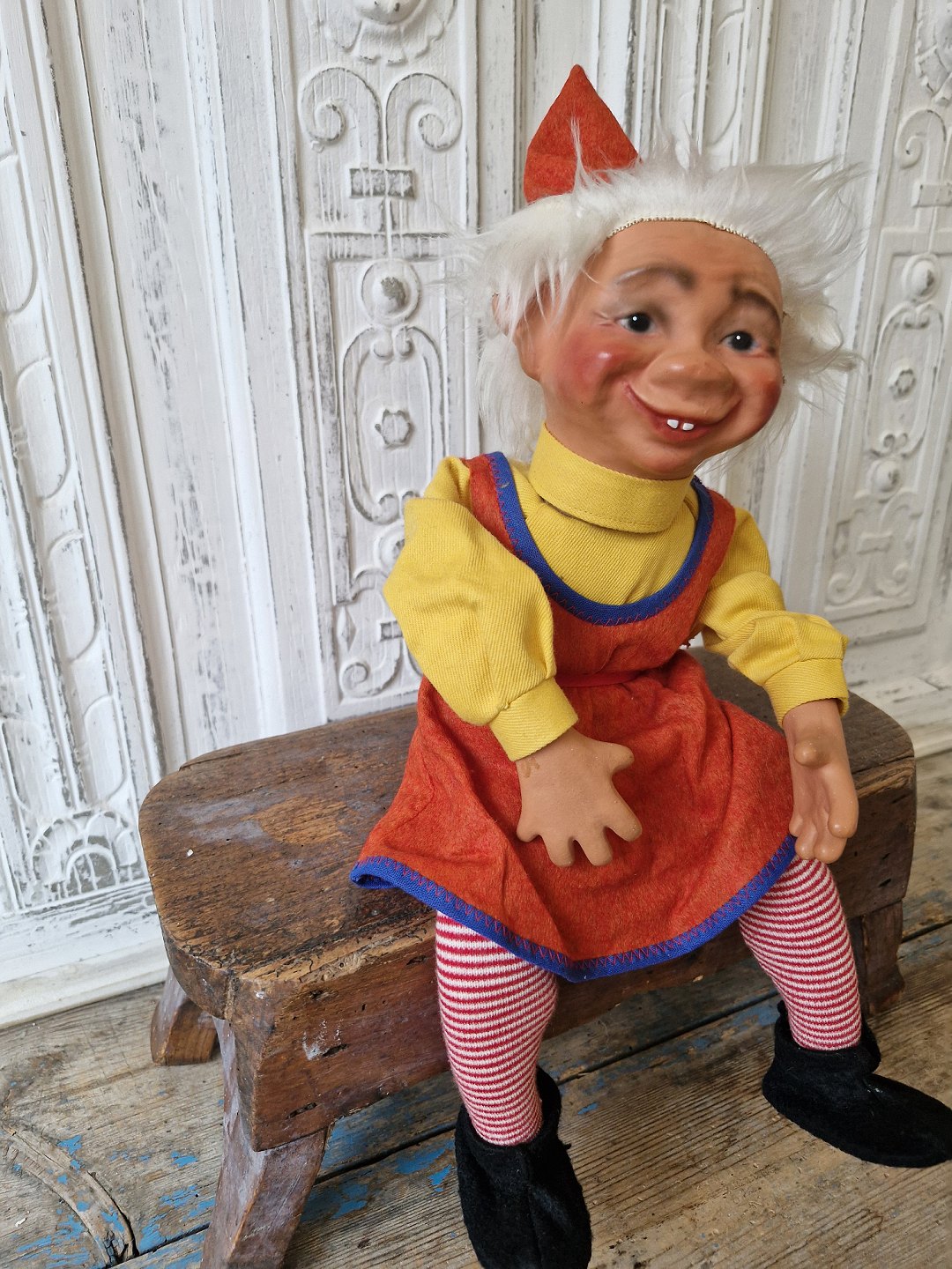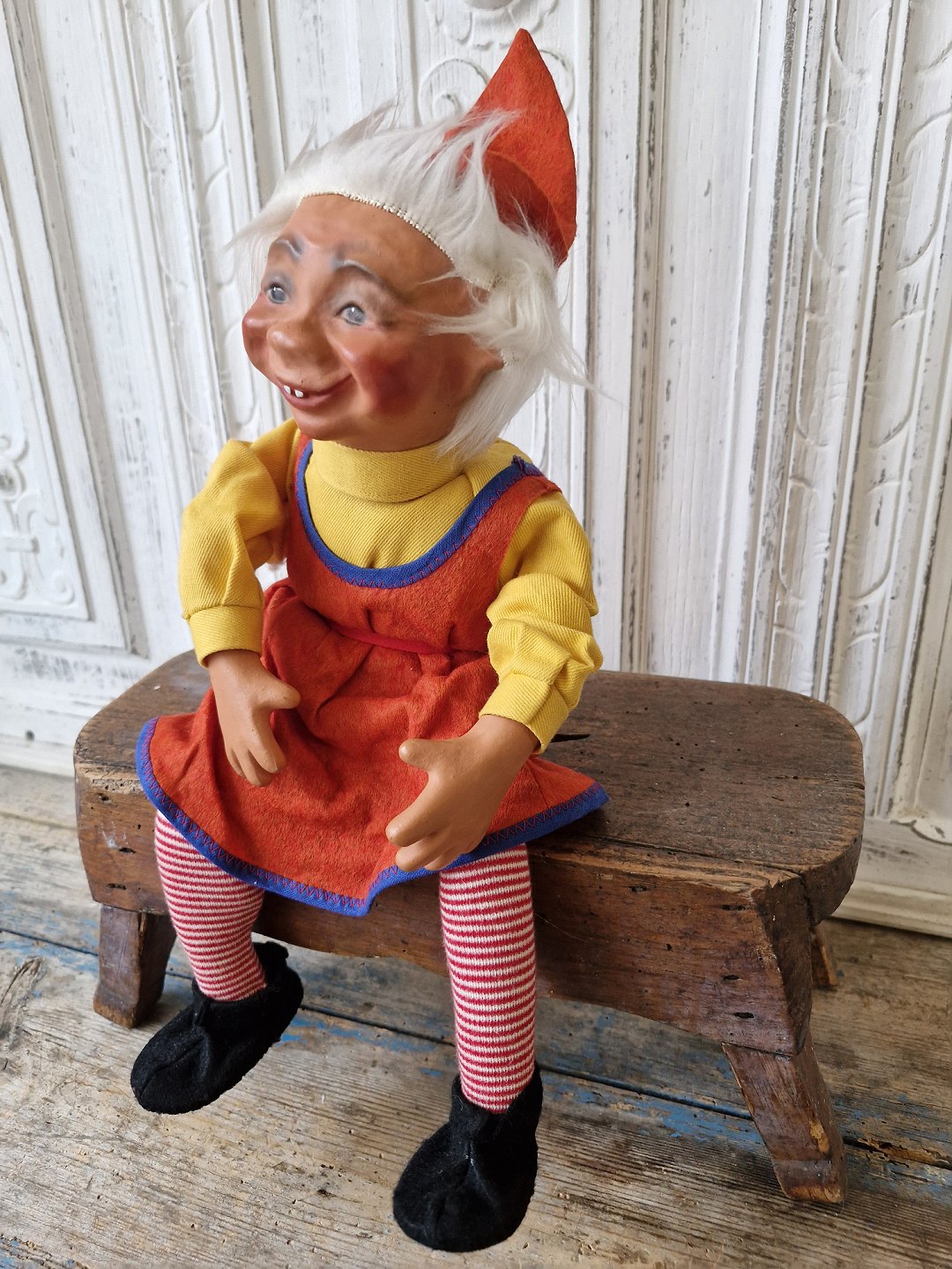 Gammel butiks nisse pige 37 cm.