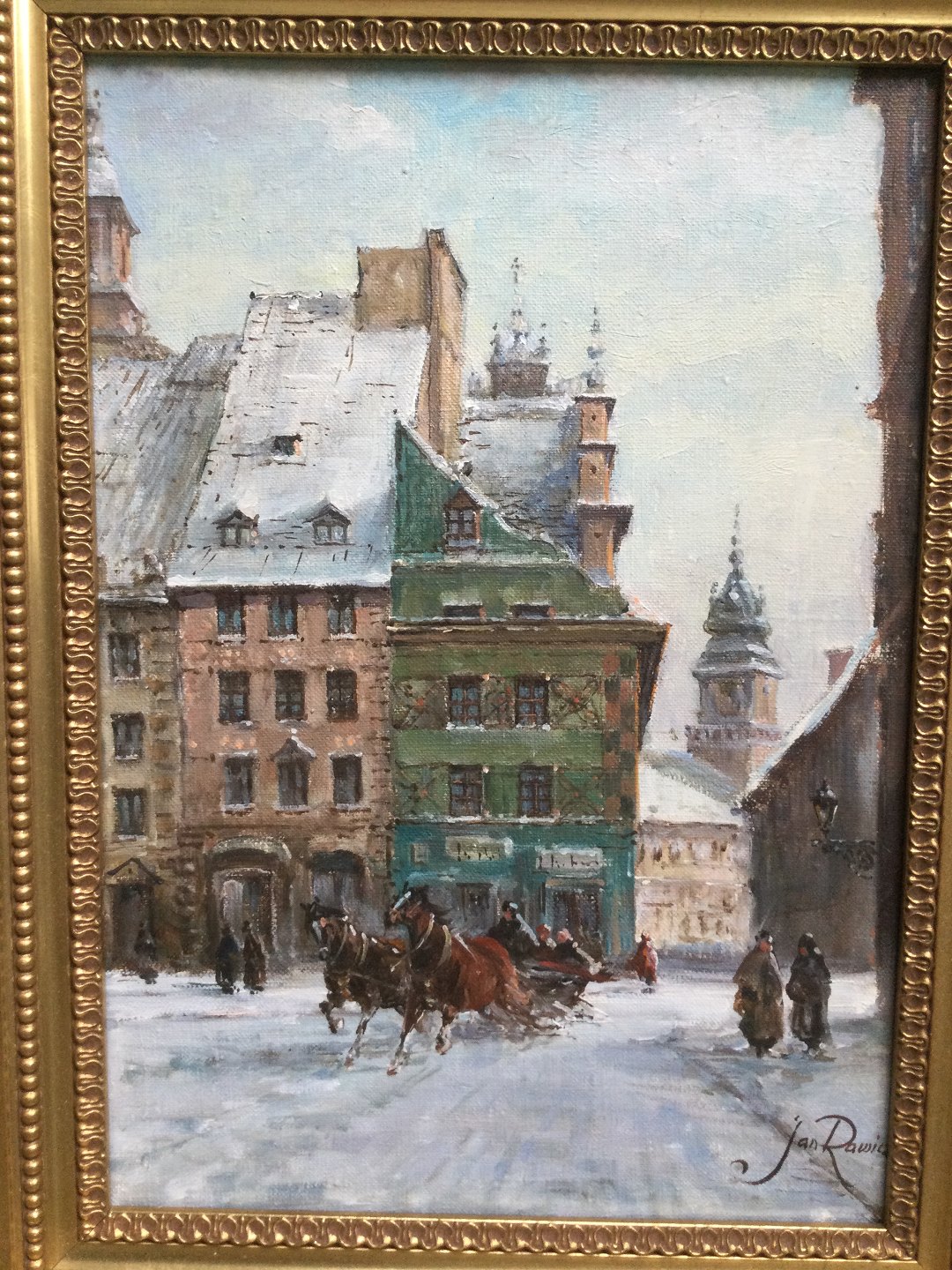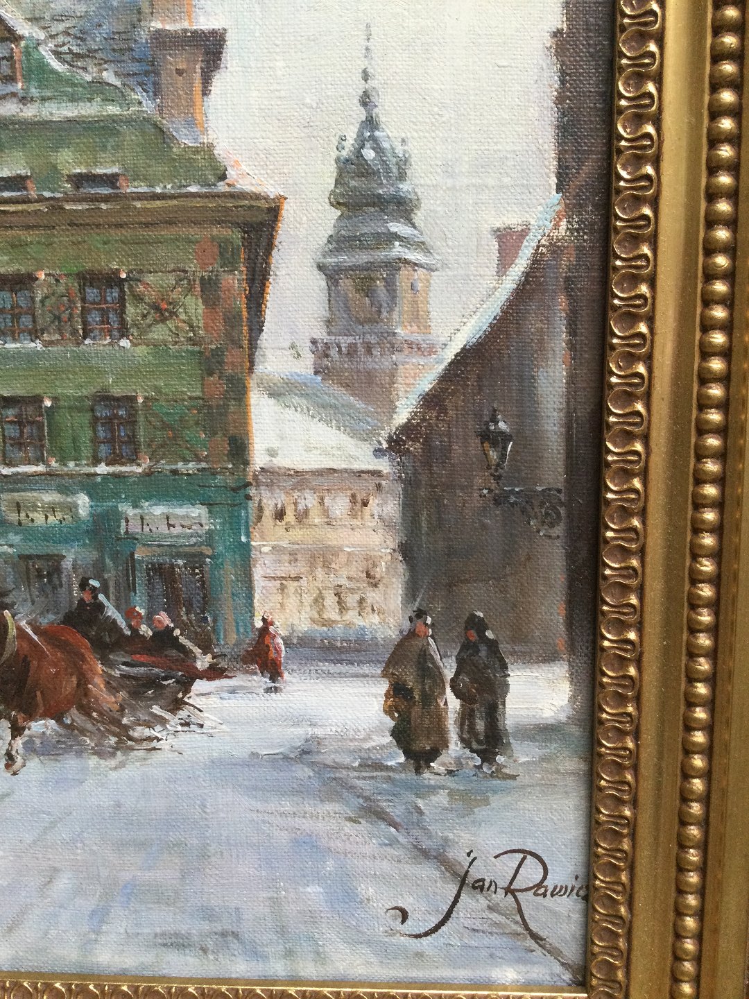 Maleri af Jan Rawicz - Vinterparti fra polsk by.