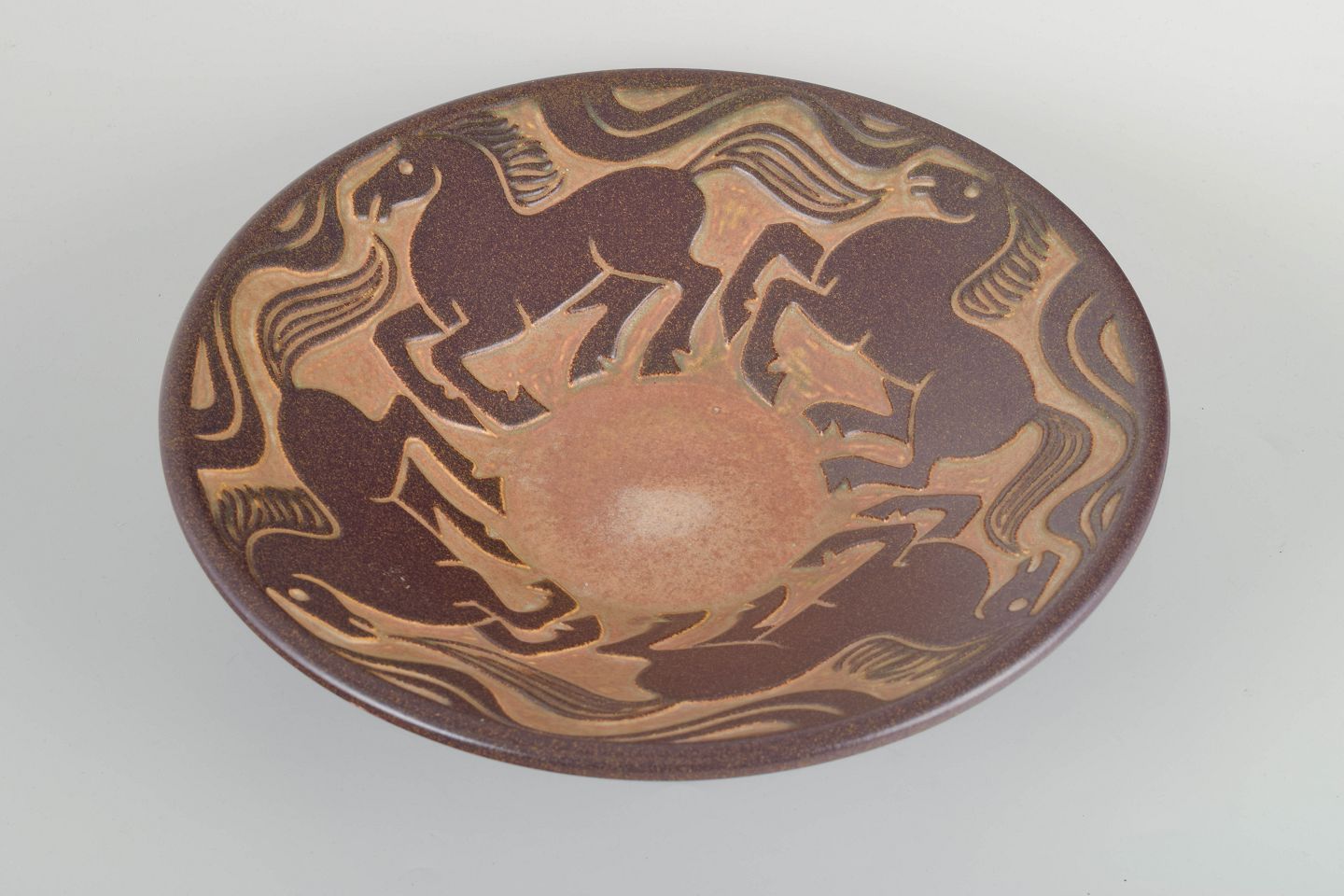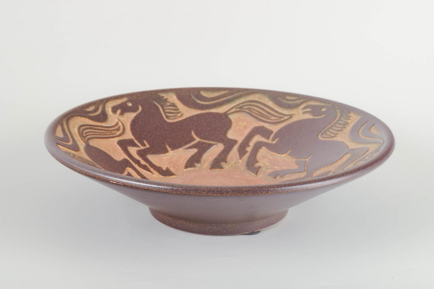 Imponerende stor, rund stentøjsskål med organisk form og karakteristisk glasur.