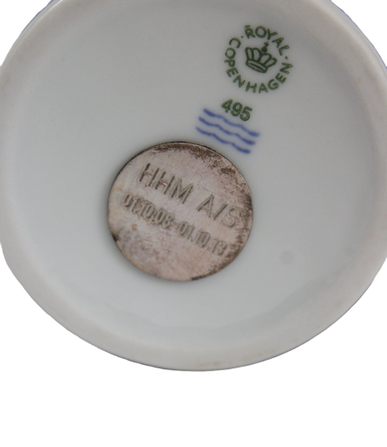 Royal Copenhagen, Lille årskrus 2013 med graveret sølvplaquette i bund.. Designer Pia Andersen. Nr. 495. Årskrus er produceret fra 1967 til 2014. Højde 7,5 cm. Diameter 6,5 cm. Pris: 600 kr. stk. Lager: 1