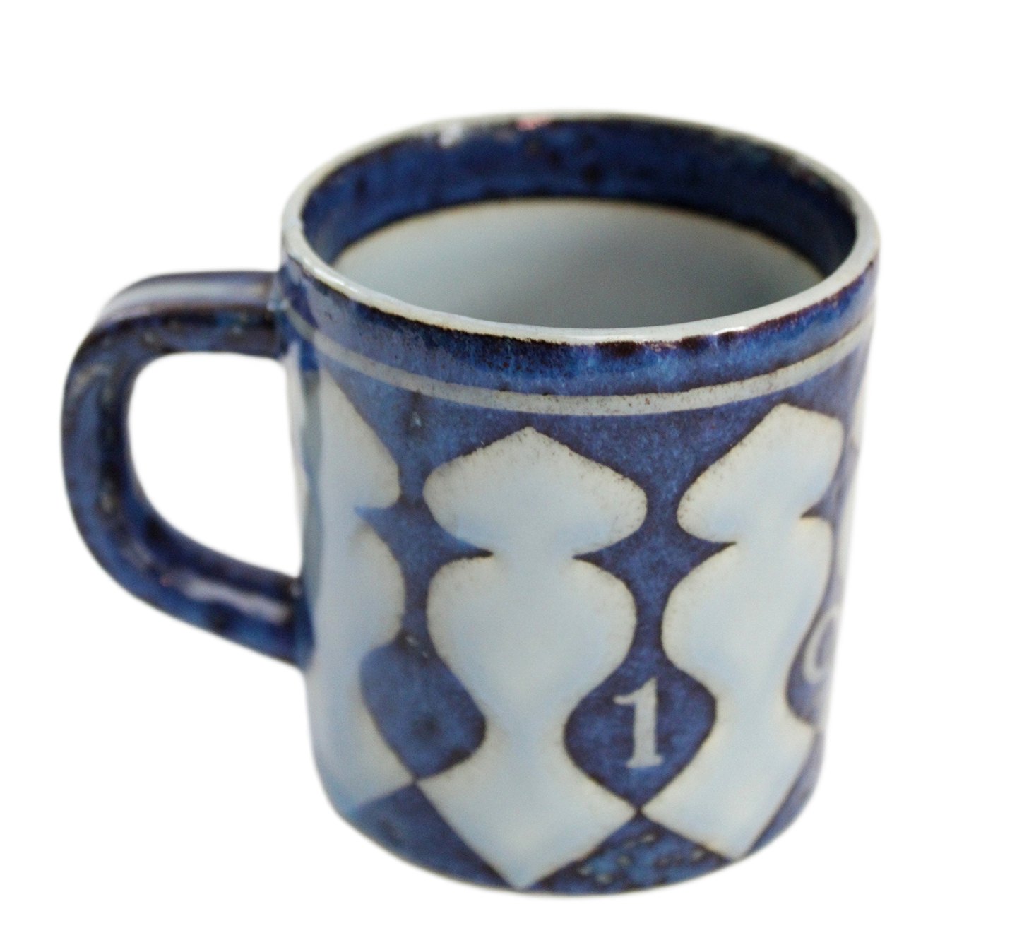 Aluminia, Lille årskrus i kunstfajance. Designer Nils Thorson. Dette er det første årskrus. Nr. 3495. Årskrus er produceret fra perioden 1967 til 2014, fra 1968 er det Royal Copenhagen. Højde 7,5 cm. Diameter 6,8 cm. Lidt ujævn bemalet kant. Pris: 700 kr. stk. Lager: 1
