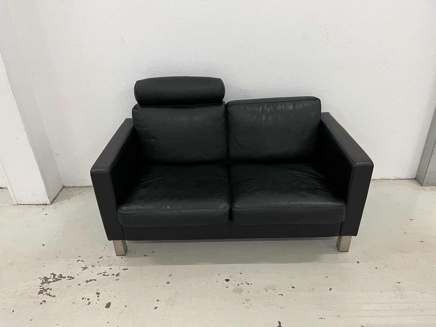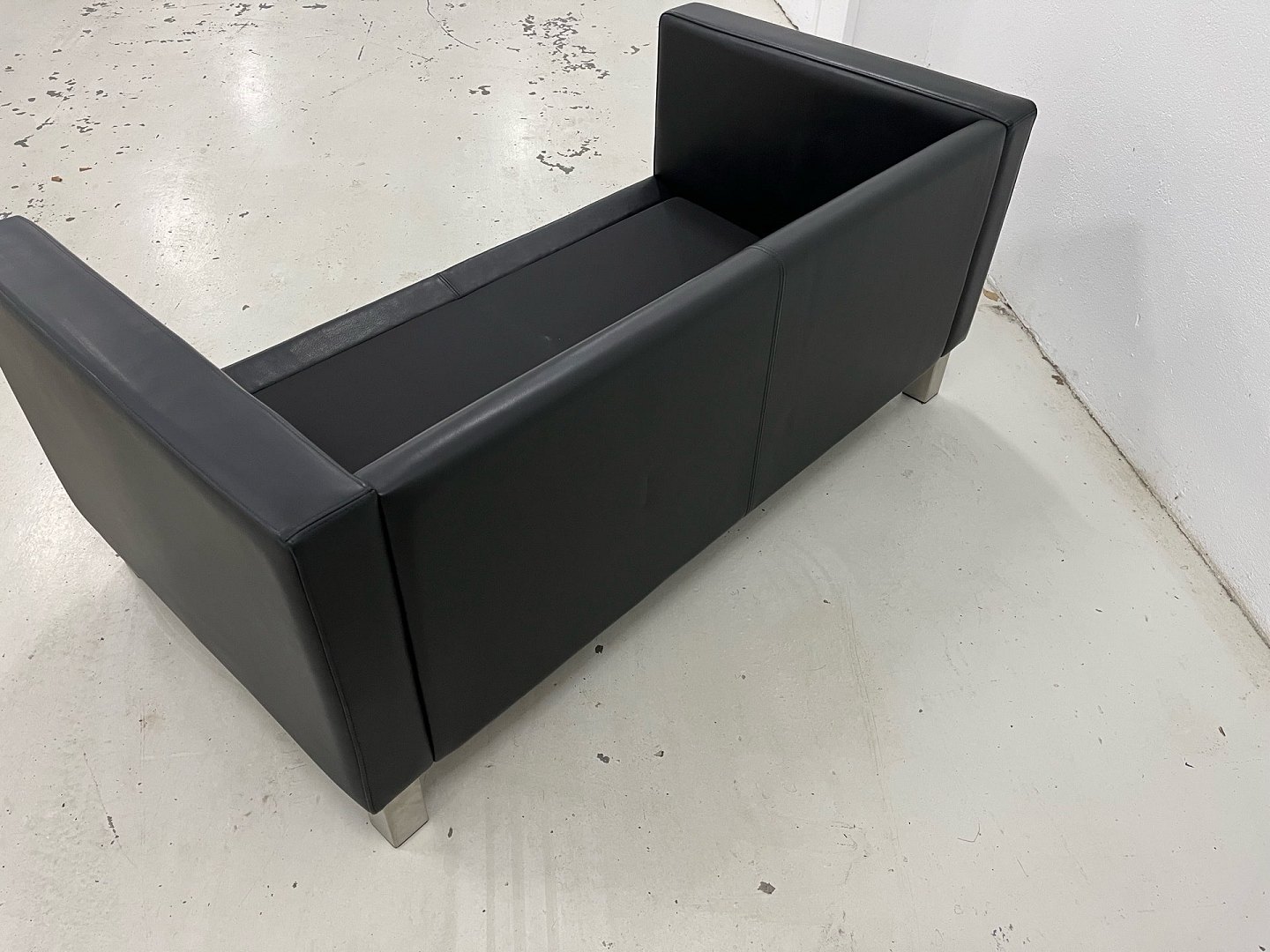 Mogens Hansen MH321 2 Pers. Sofa i sort Premium læder gruppe 2 og med ben i børstet stål. Nypris 35.403,-