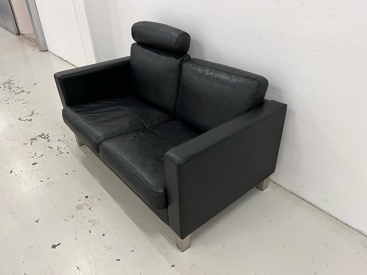 Mogens Hansen MH321 2 Pers. Sofa i sort Premium læder og med ben i børstet stål. Nypris 35.403,-