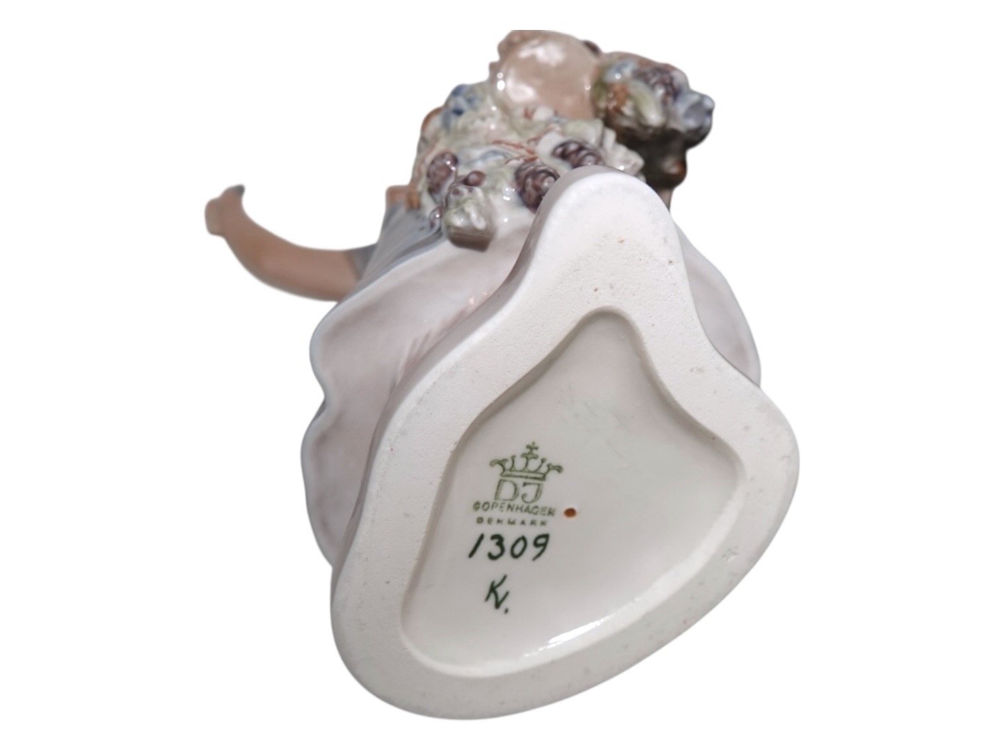 Sjælden Dahl Jensen figur, ung dame med blomster med titlen "Flora".