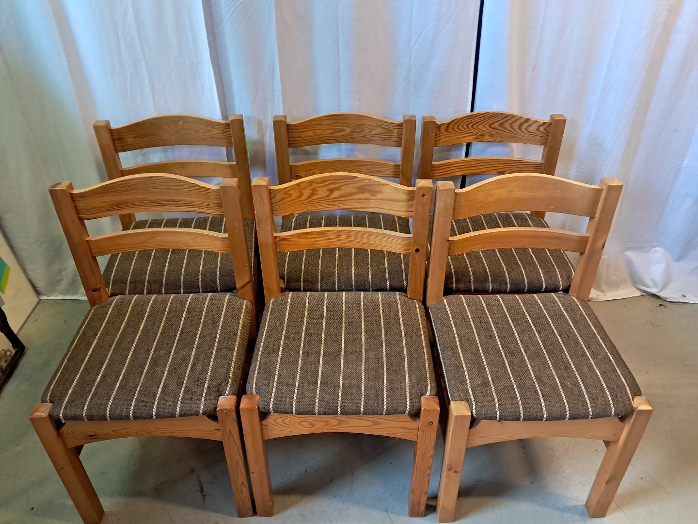 6 Stole i massivt fyrretræ, fra 1980erne.