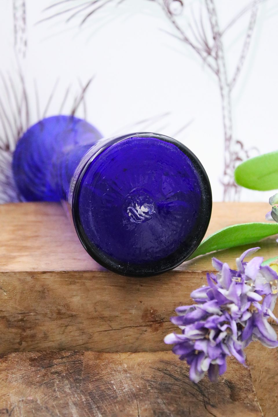 Antikt blåt hyacintglas i mundblæst glas fra Holmegaard glasværk...