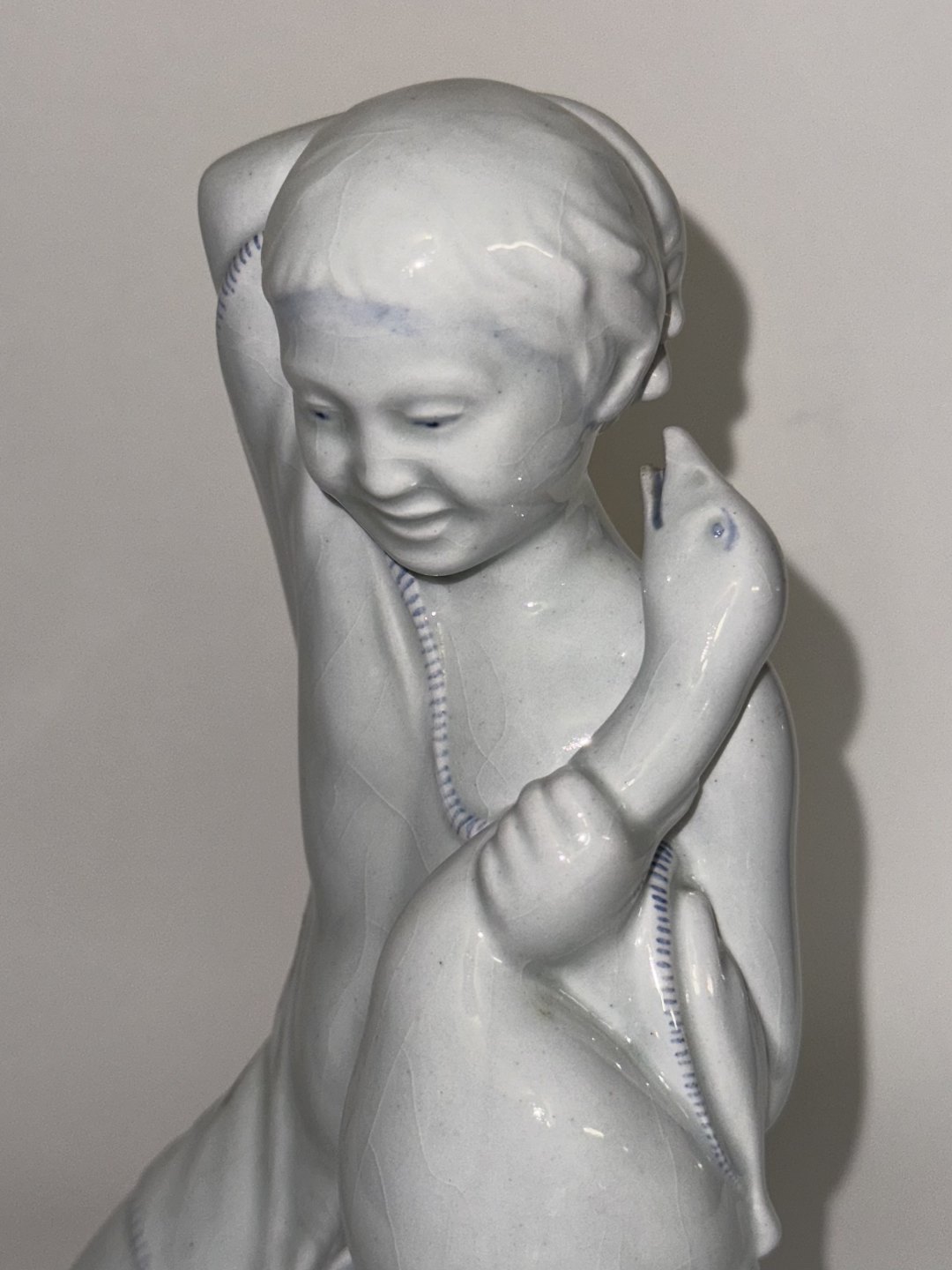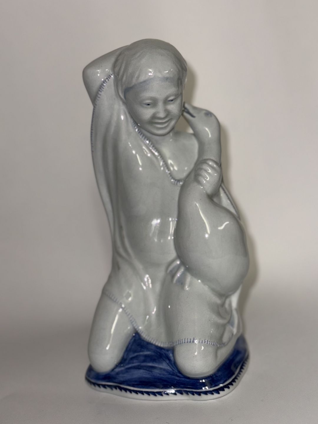Michael Pedersen: Figur med pige og gås for Aluminia fabrikken 1918